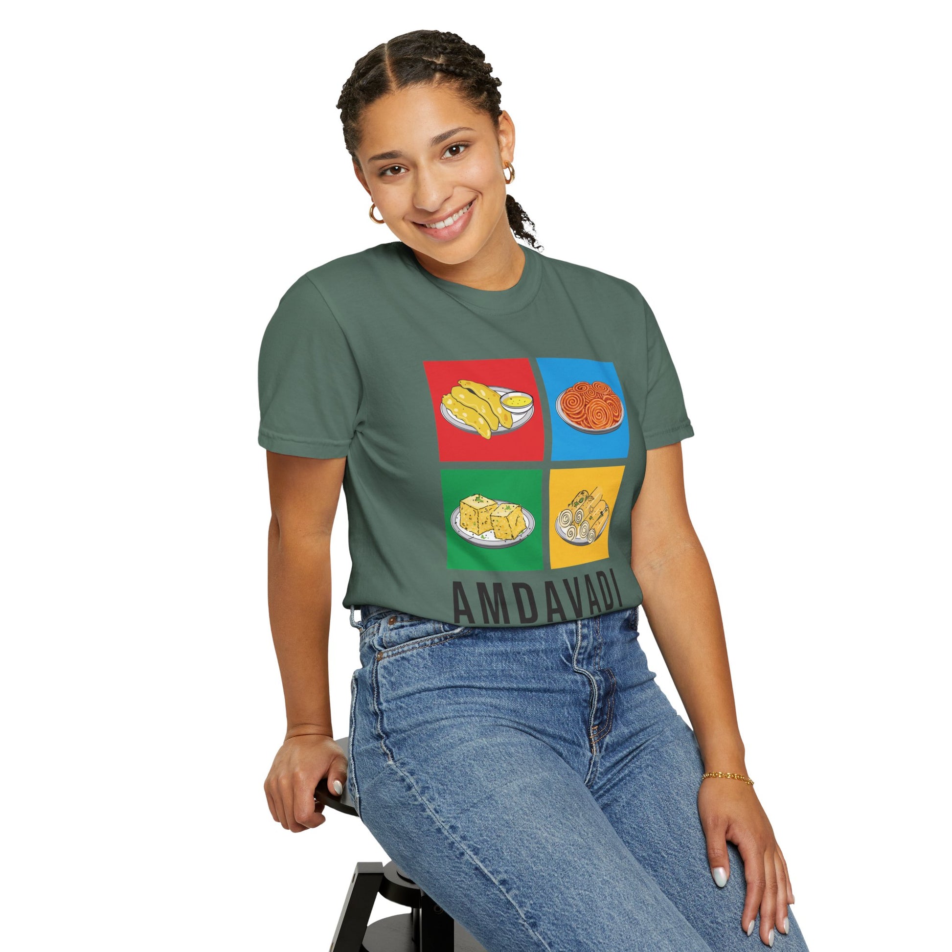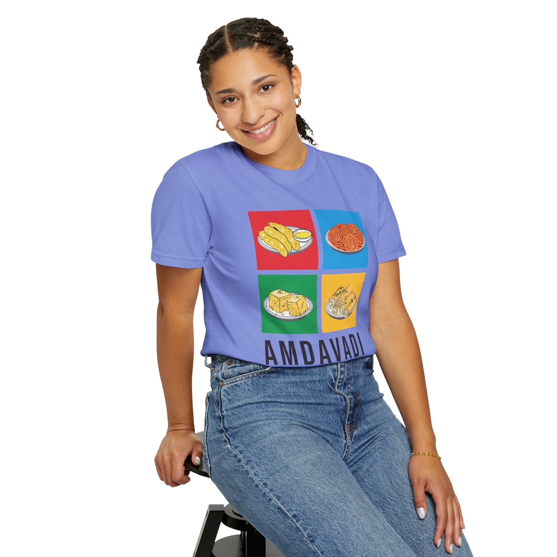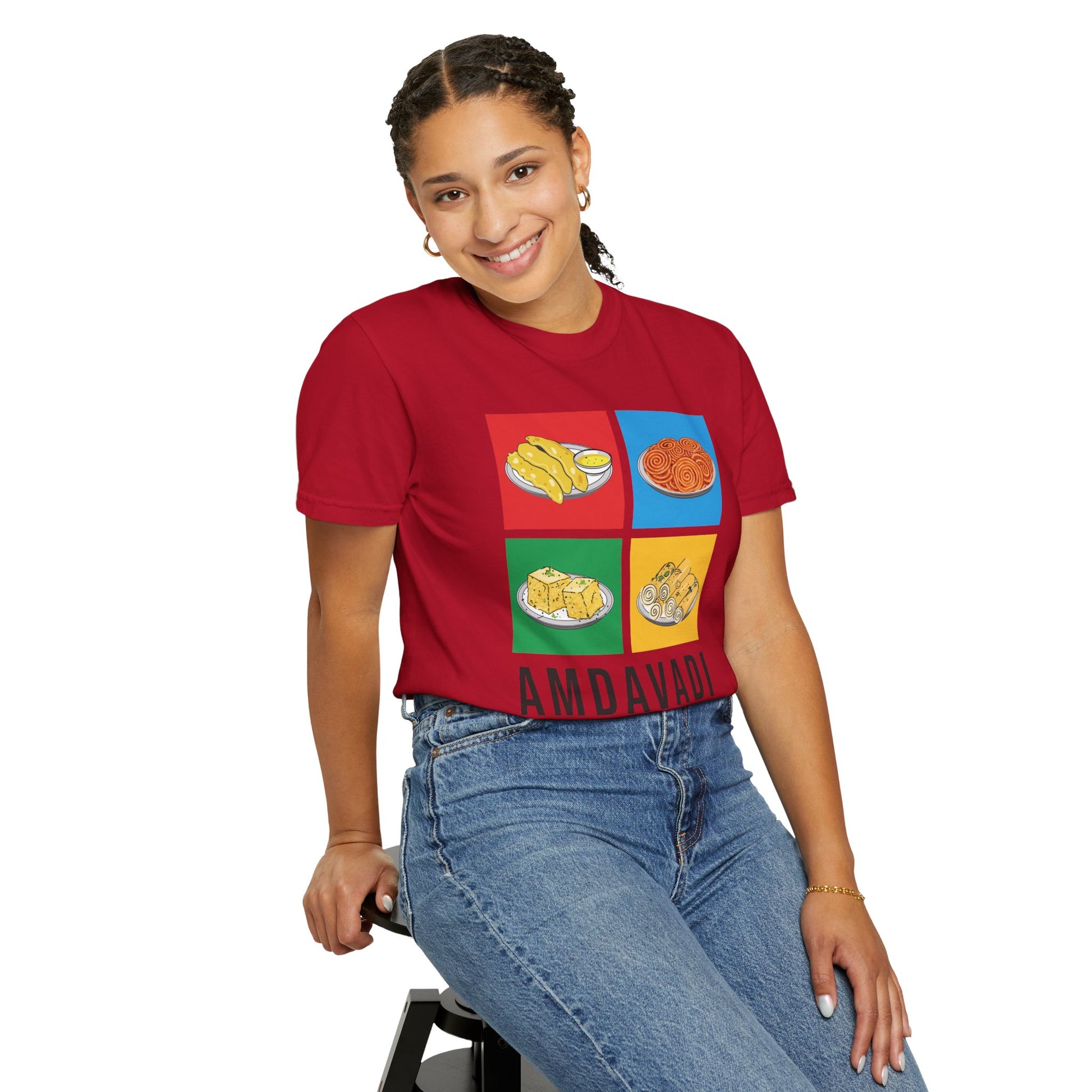 Show off your love for Amdavad with our 'Amdavadi' t-shirt! This tee is a deliciously fun tribute to the city's rich culinary heritage. Perfect for every proud Amdavadi foodie!