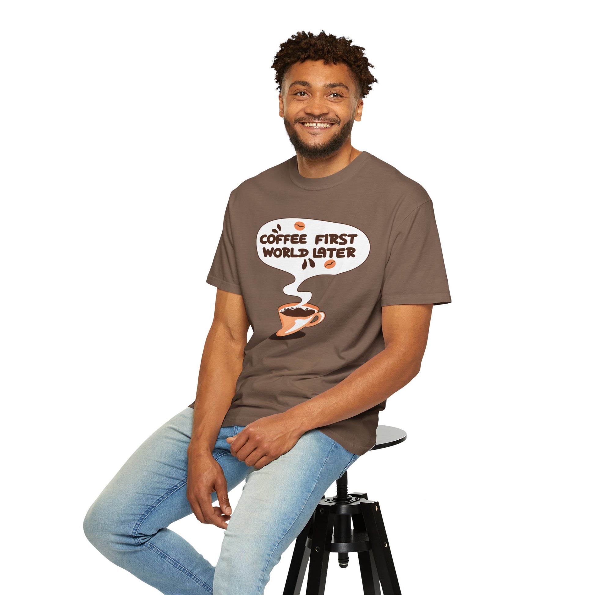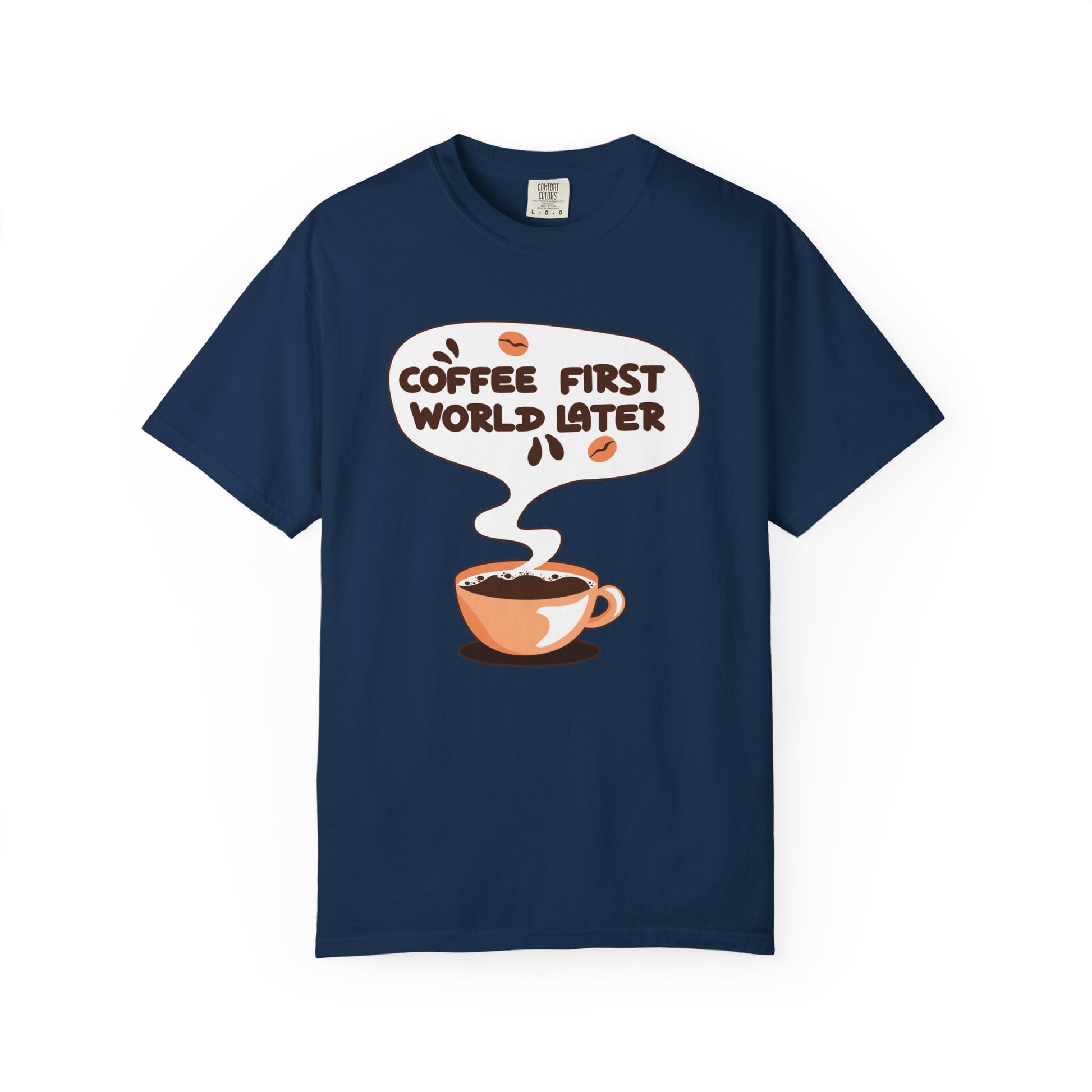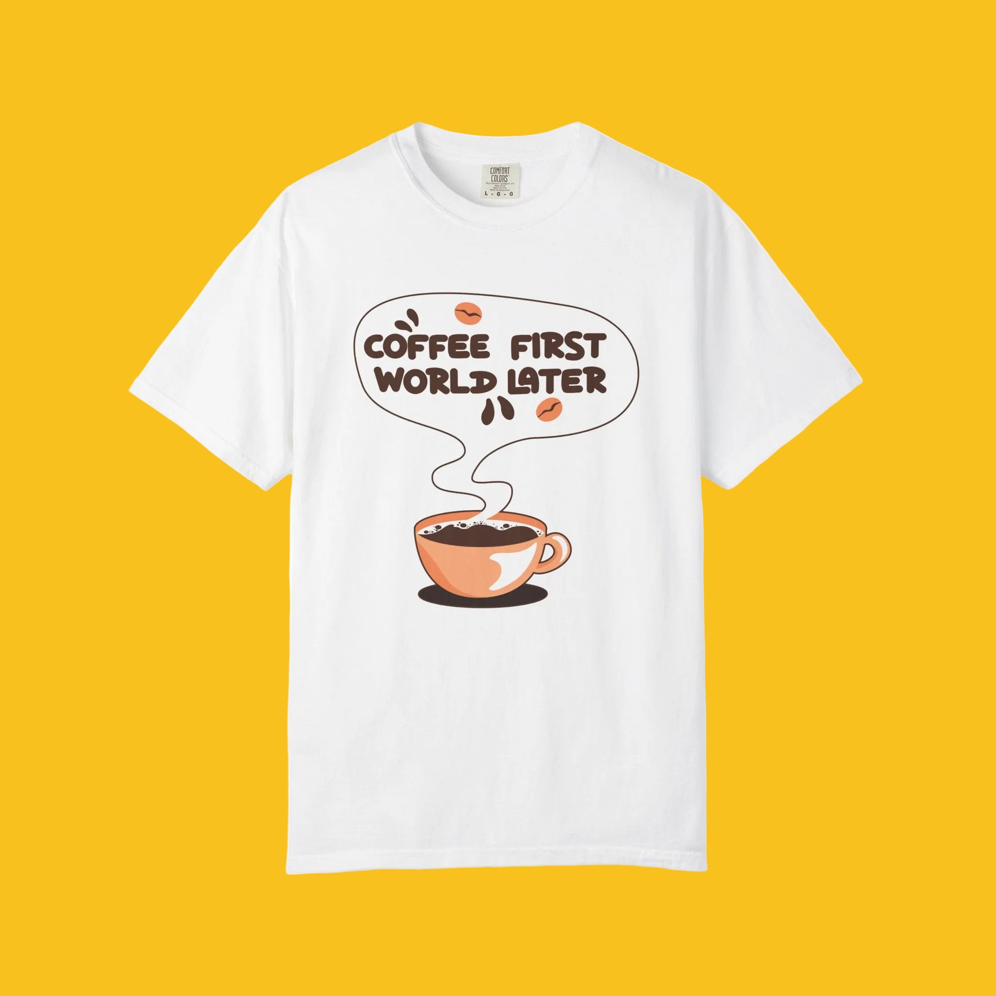 A tee that speaks your mantra—"Coffee First, World Later." Perfect for caffeine lovers who know their priorities!