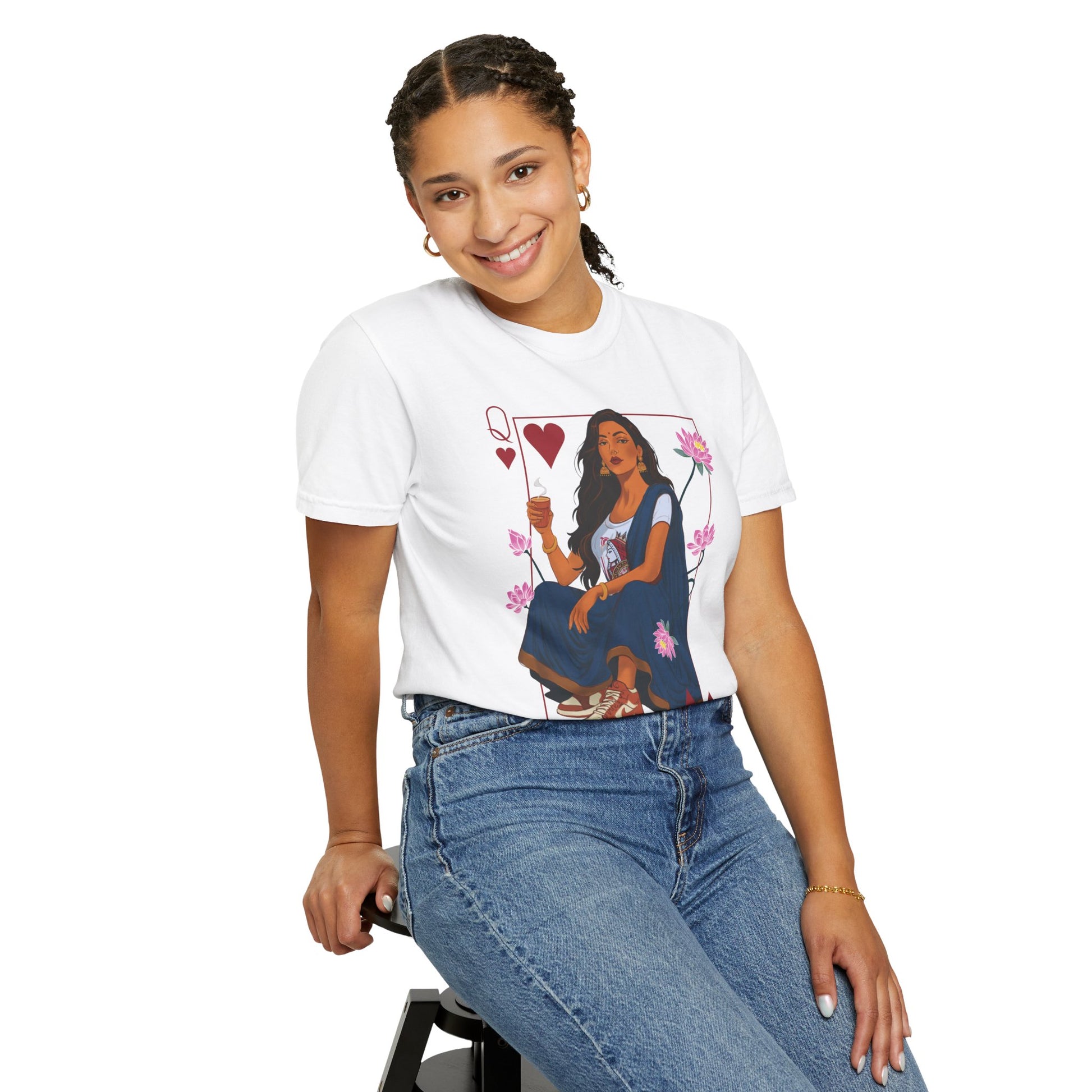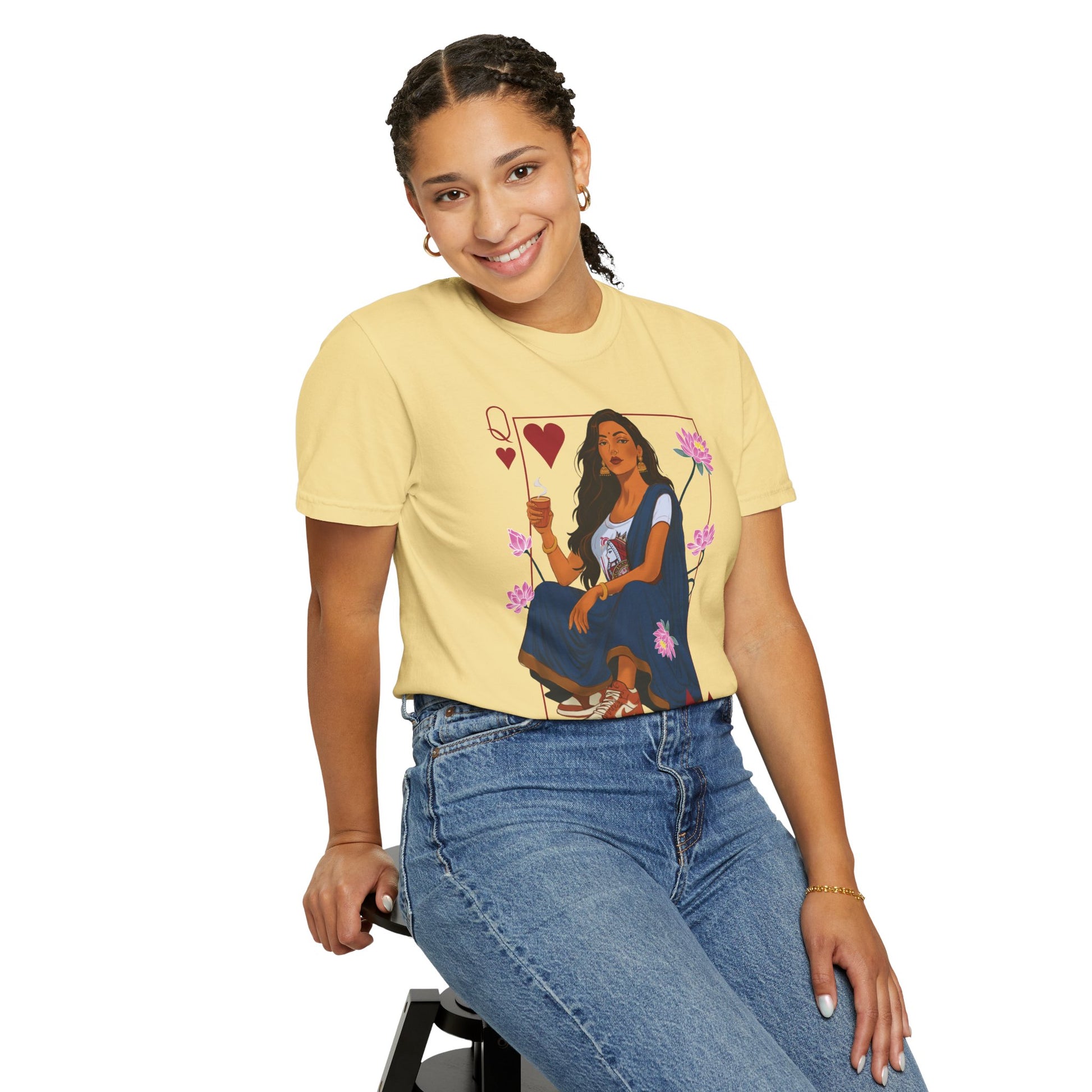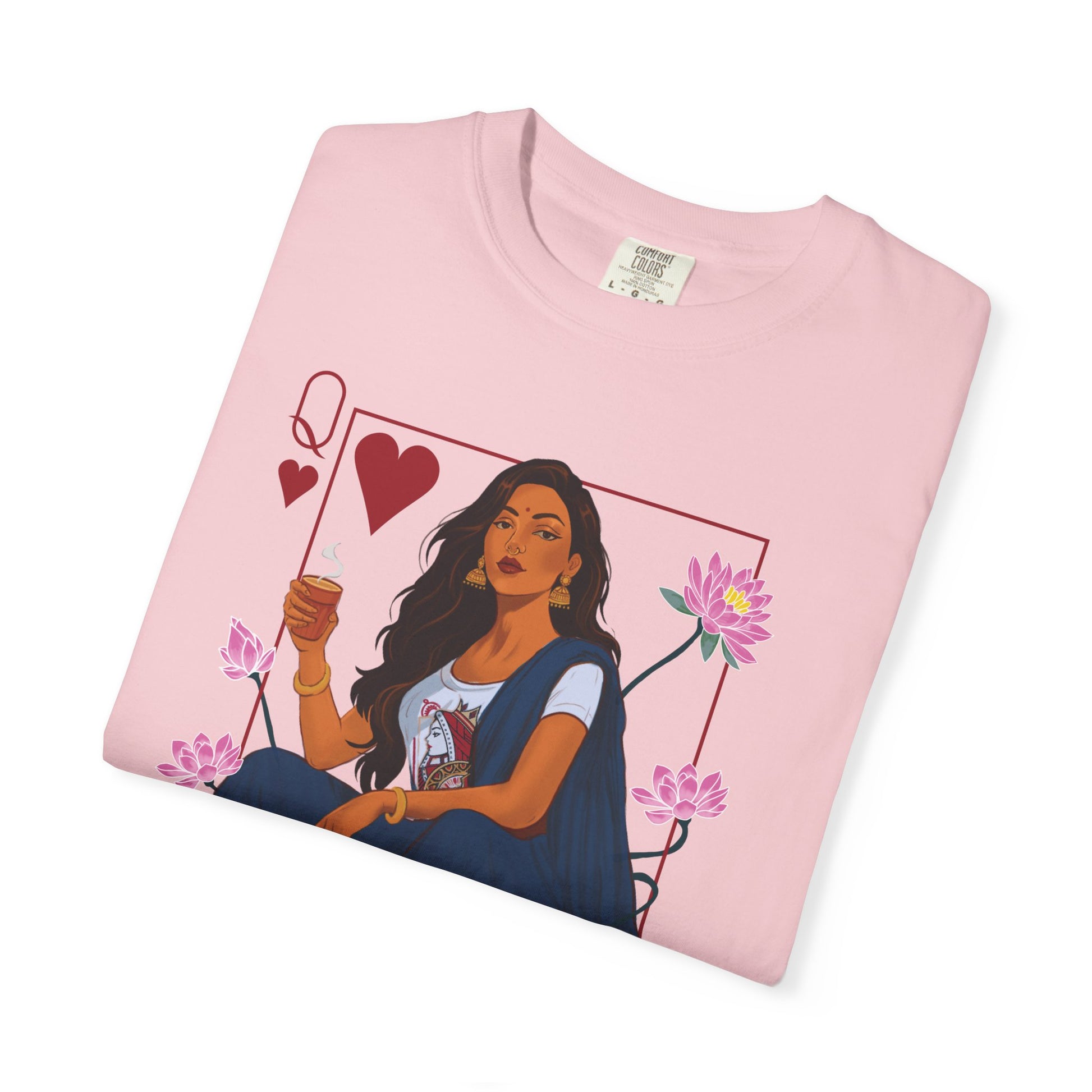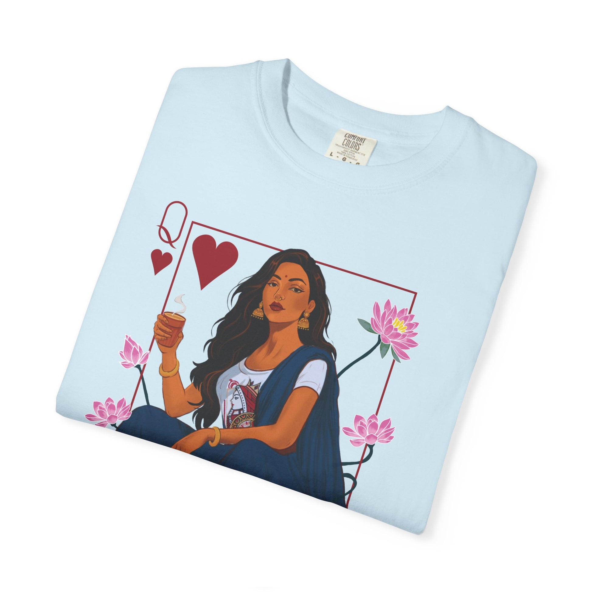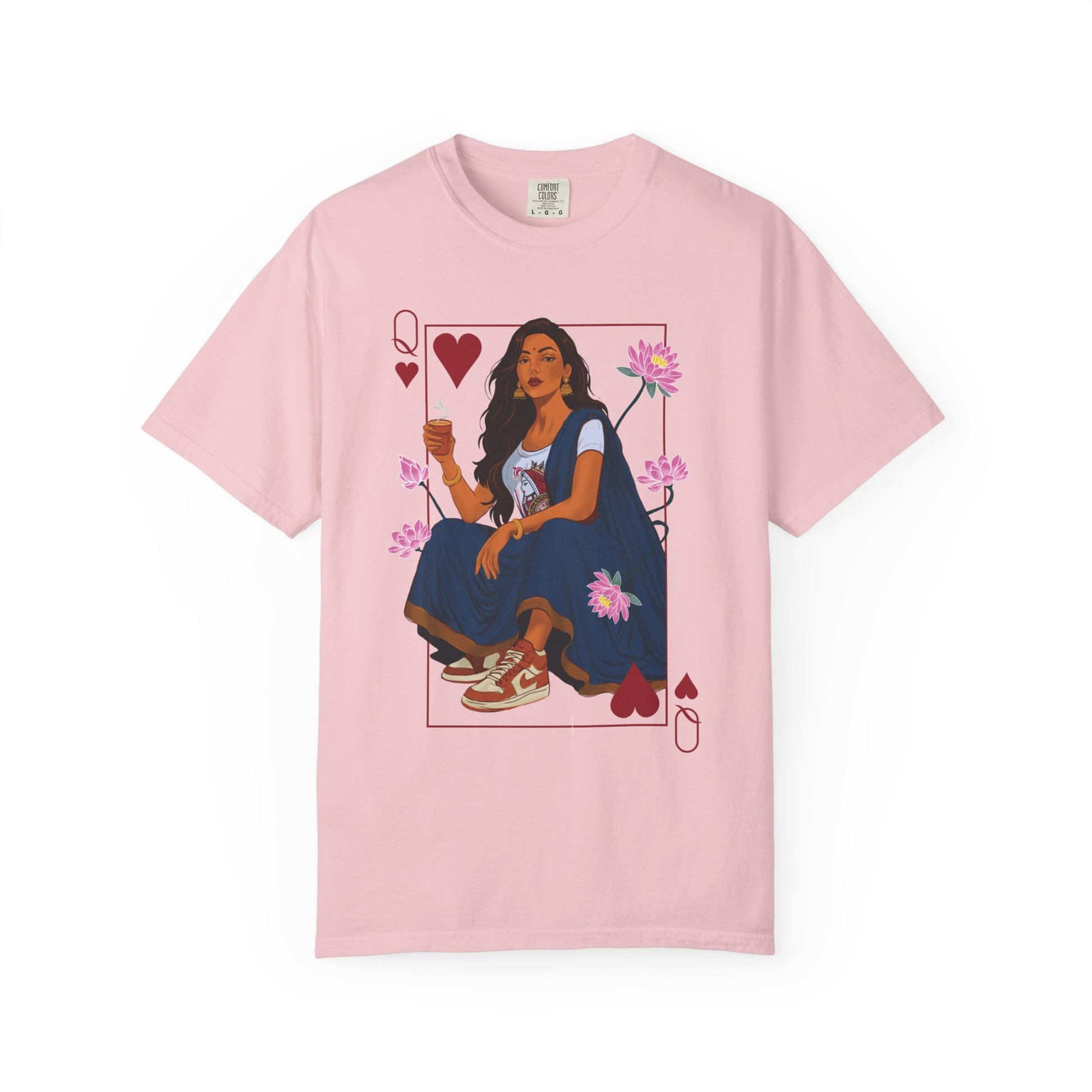 Serve queen energy with a desi twist. This graphic cotton tee celebrates the power, confidence, and effortless swag of a woman who owns every room she walks into. It blends tradition with street style in a way that feels bold, modern, and unapologetically you.