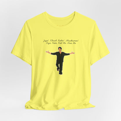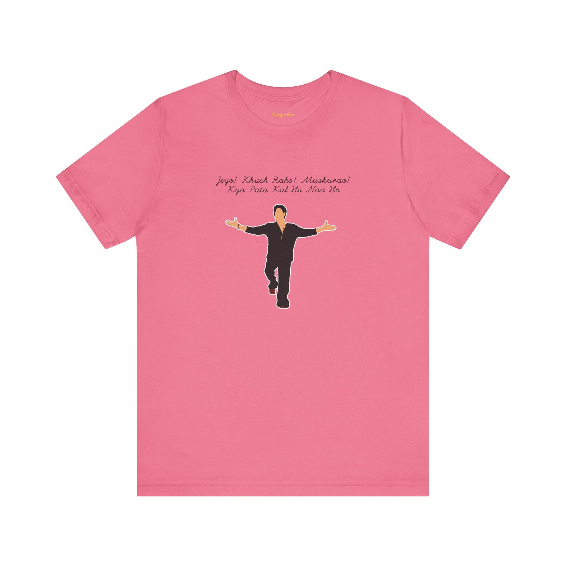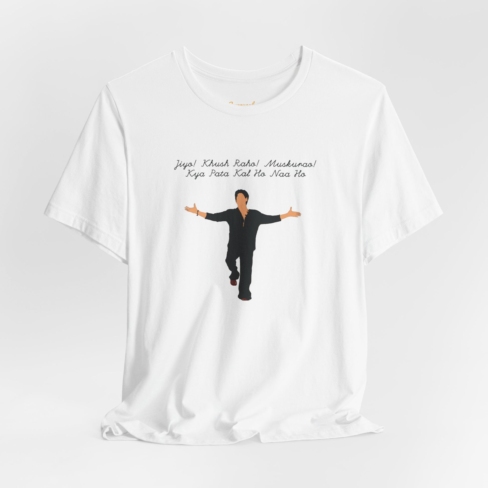 Embrace the emotions with our 'Kal Ho Naa Ho' t-shirt, honoring a movie that tugs at your heartstrings with its powerful story and SRK's unforgettable character.