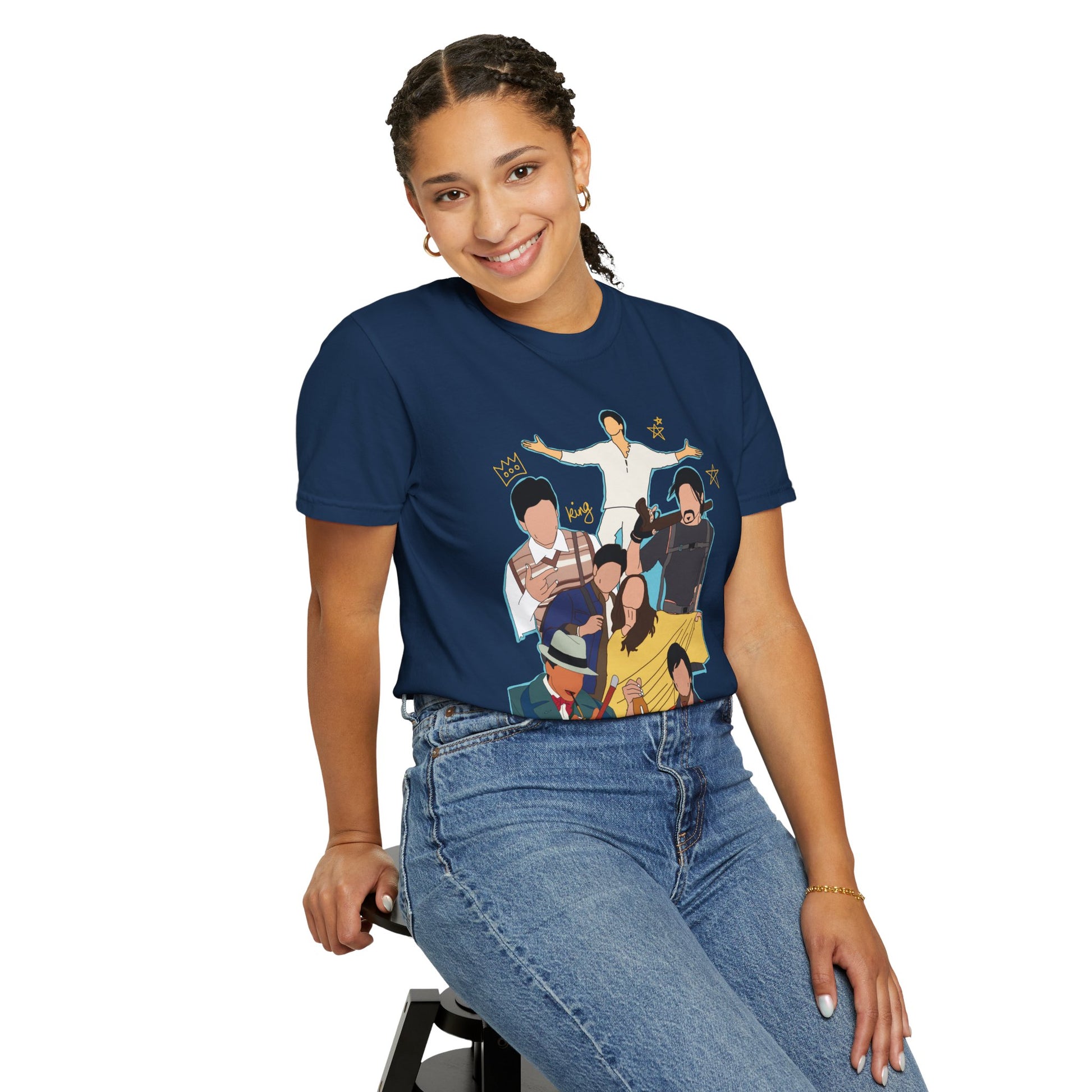 Celebrate the magic, charisma, and timeless charm of Bollywood’s ultimate superstar with this this tee. The Design featuring a bold, minimal-style collage of his most unforgettable on-screen looks, captures the nostalgia and energy of every era.