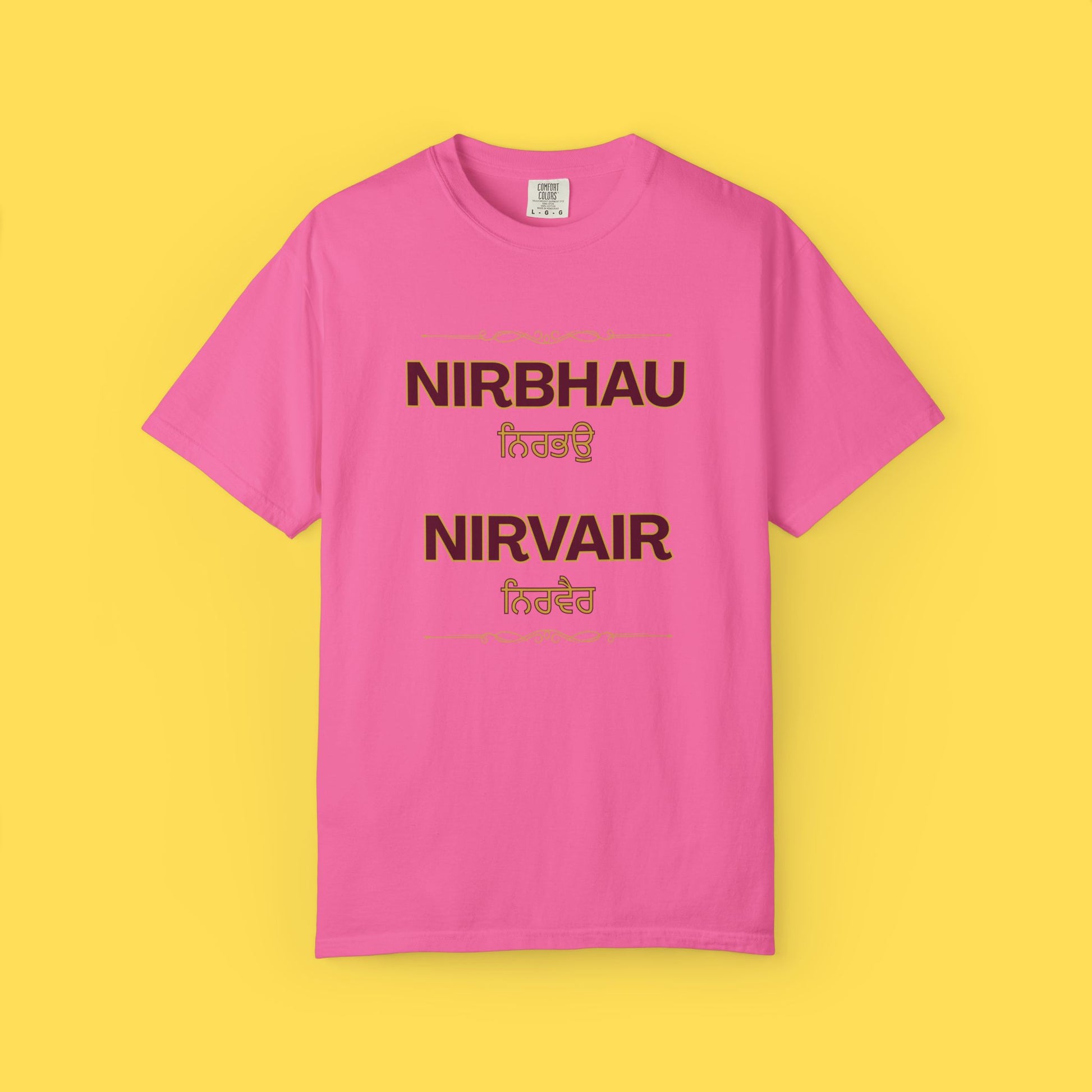 Fearless. Without Hate. Inspired by the timeless Sikh mantra, this tee is a reminder to live boldly and love freely. Wear your values—Nirbhau, Nirvair.