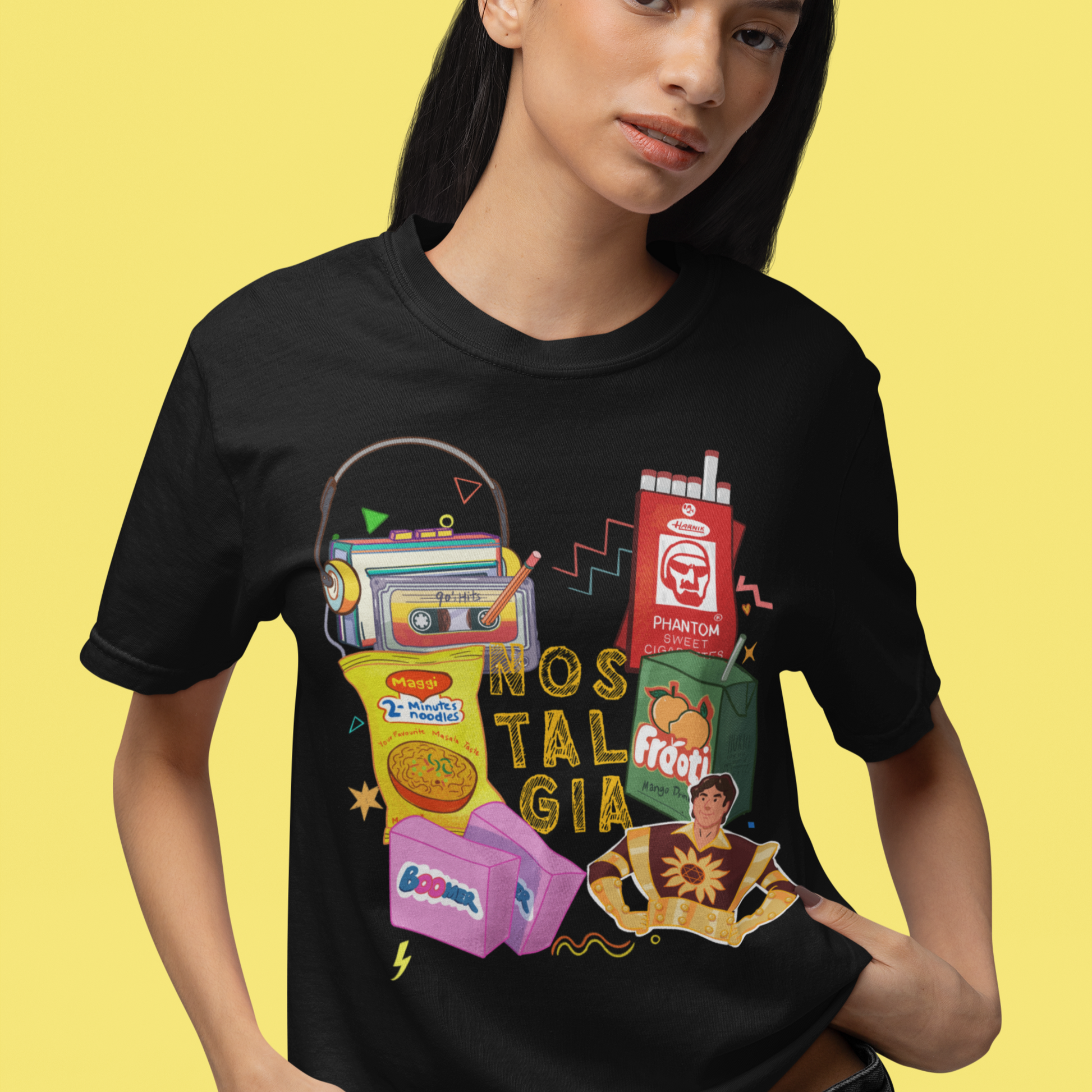 Remember the good old days of Maggi, Shaktimaan, Frooti, and cassette tapes? Well, it’s time to bring that nostalgia back! This tee is here to help you relive those iconic memories. From classic snacks to retro vibes, it is a full-on blast from the past! Ready to rock your 90s childhood?