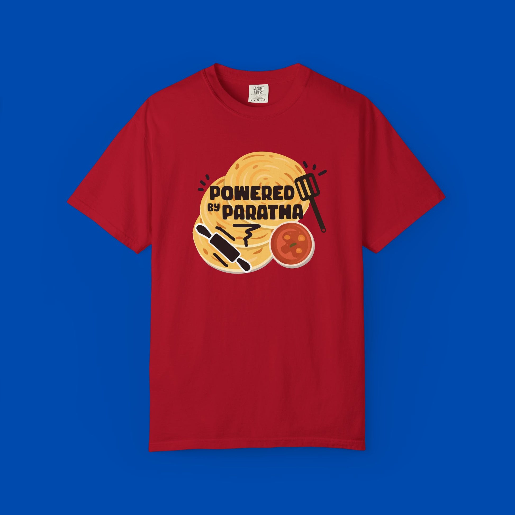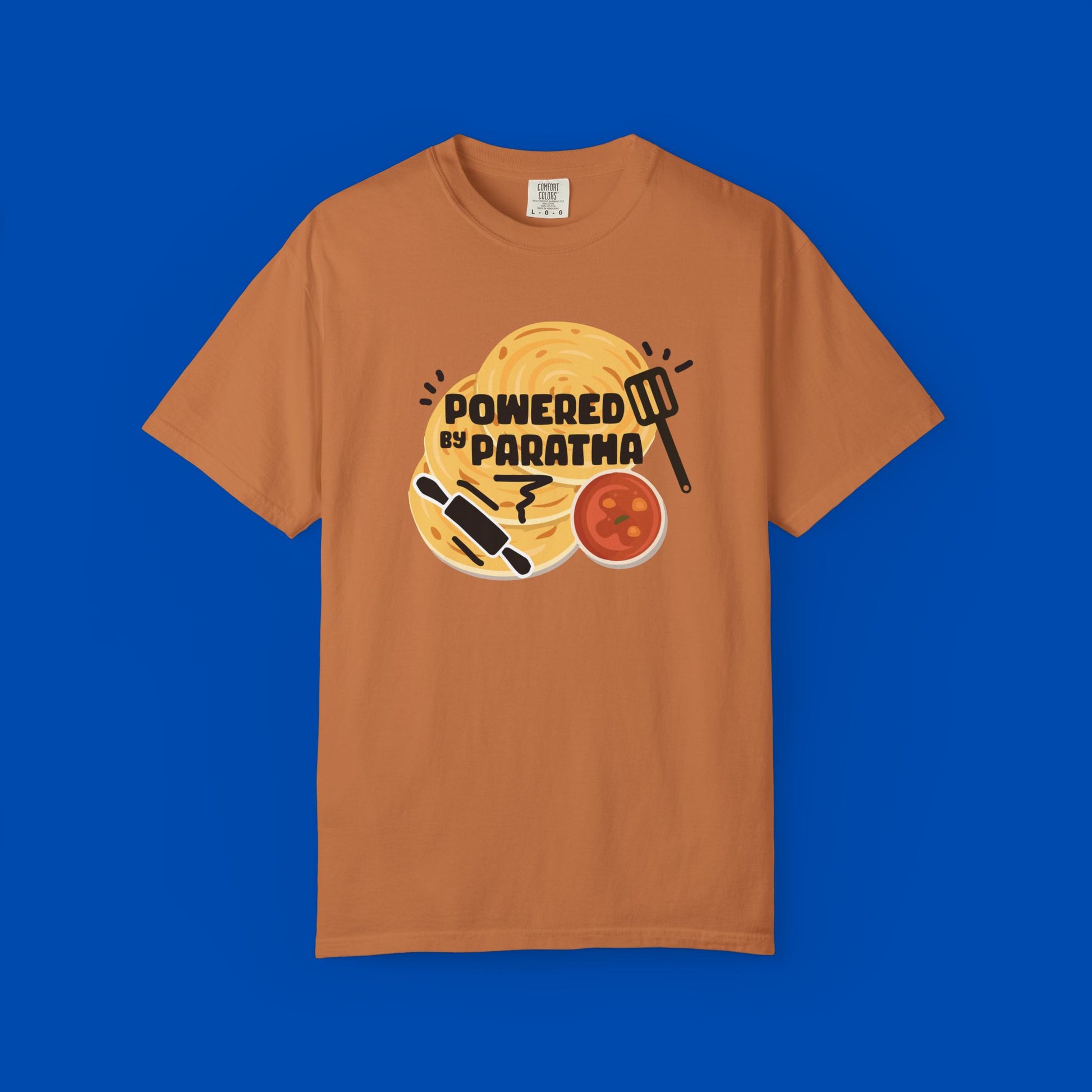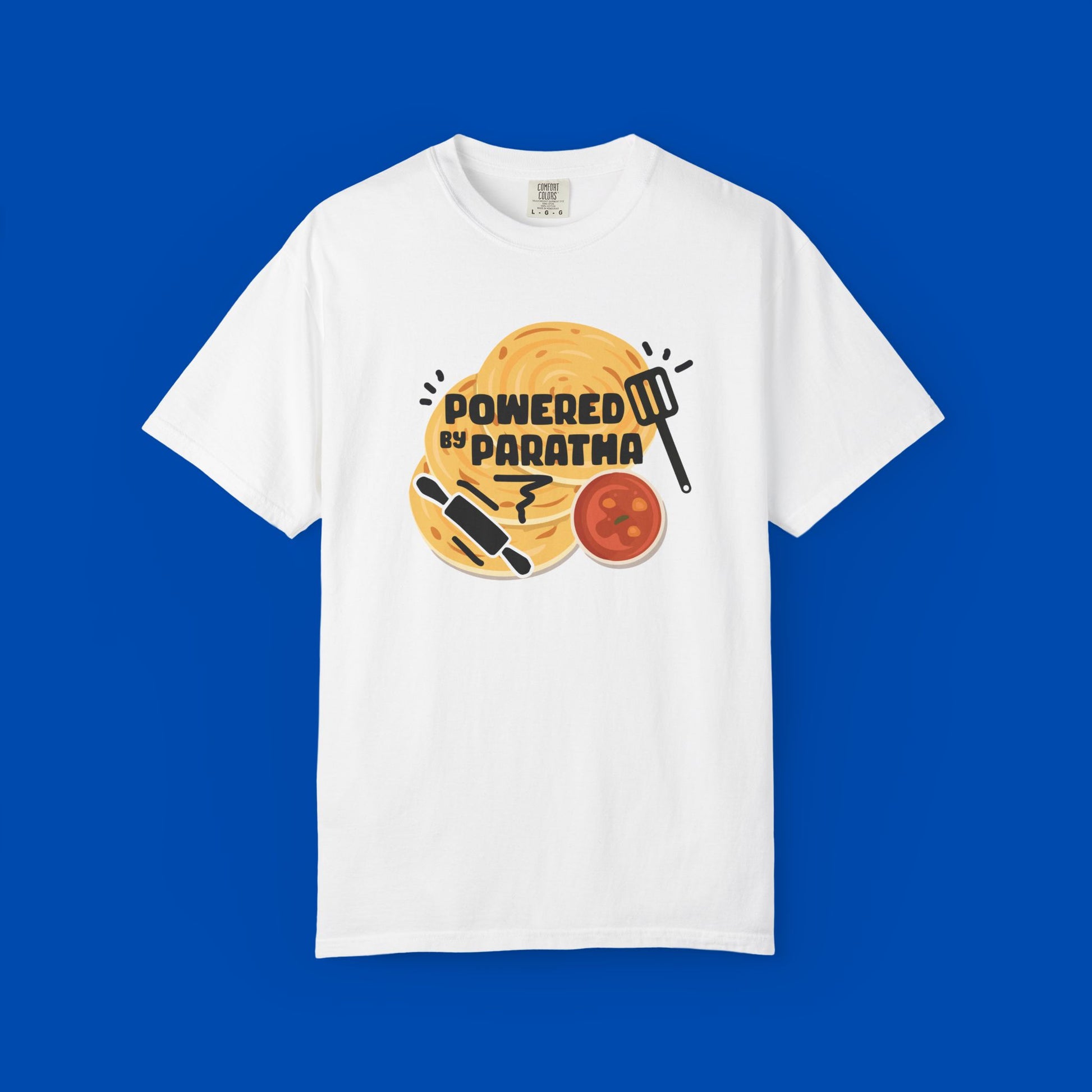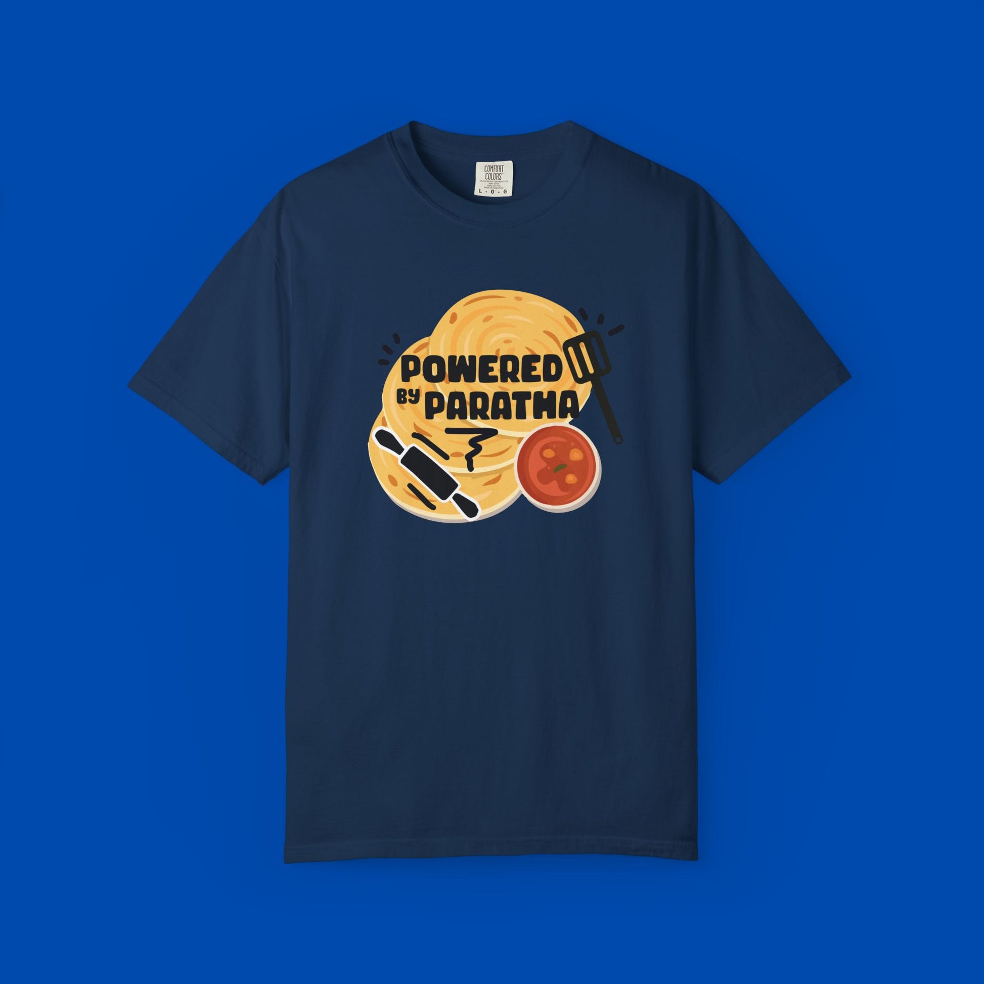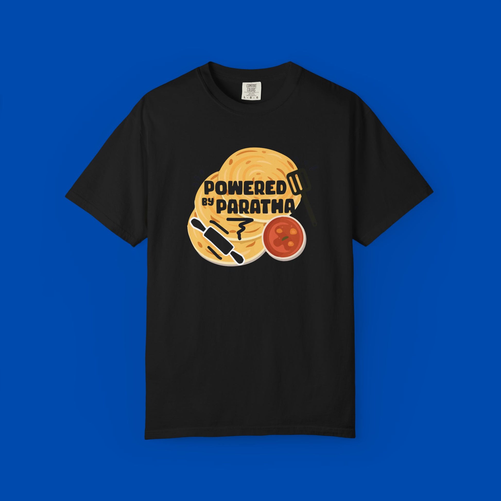 Running on parathas and proud of it! This tee is for those who draw their strength from the heartiest, flakiest bites.