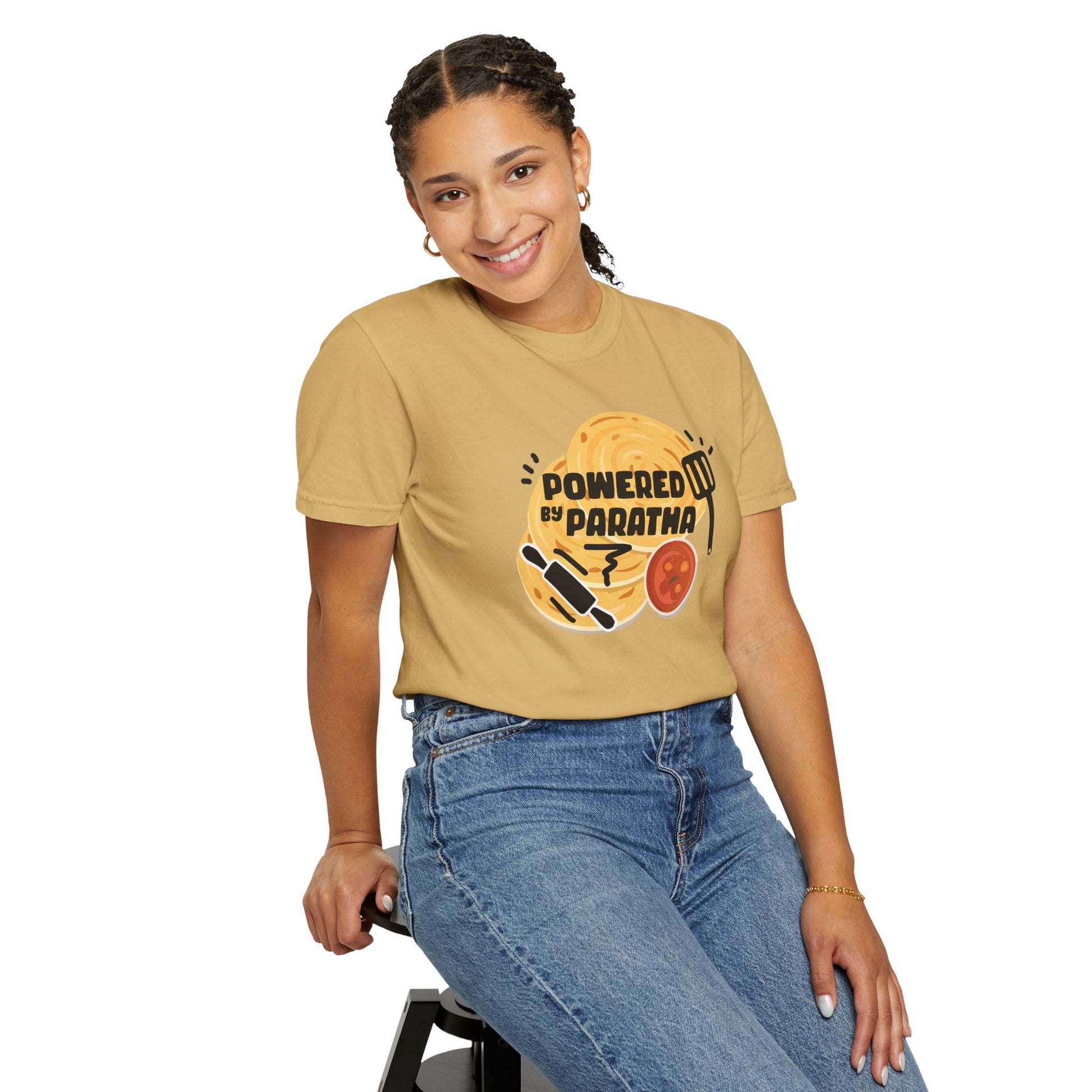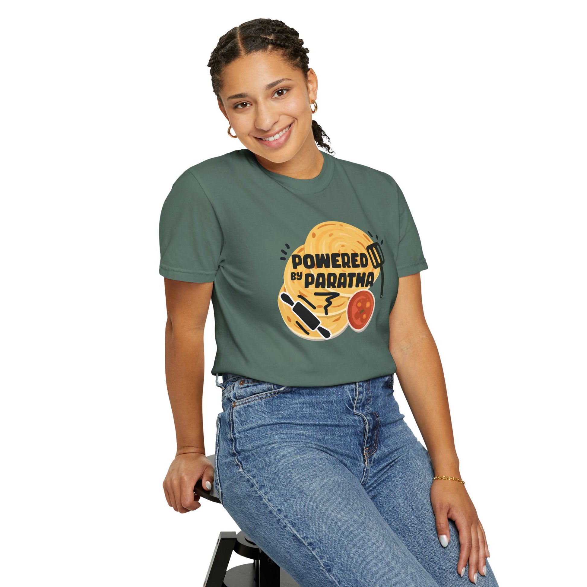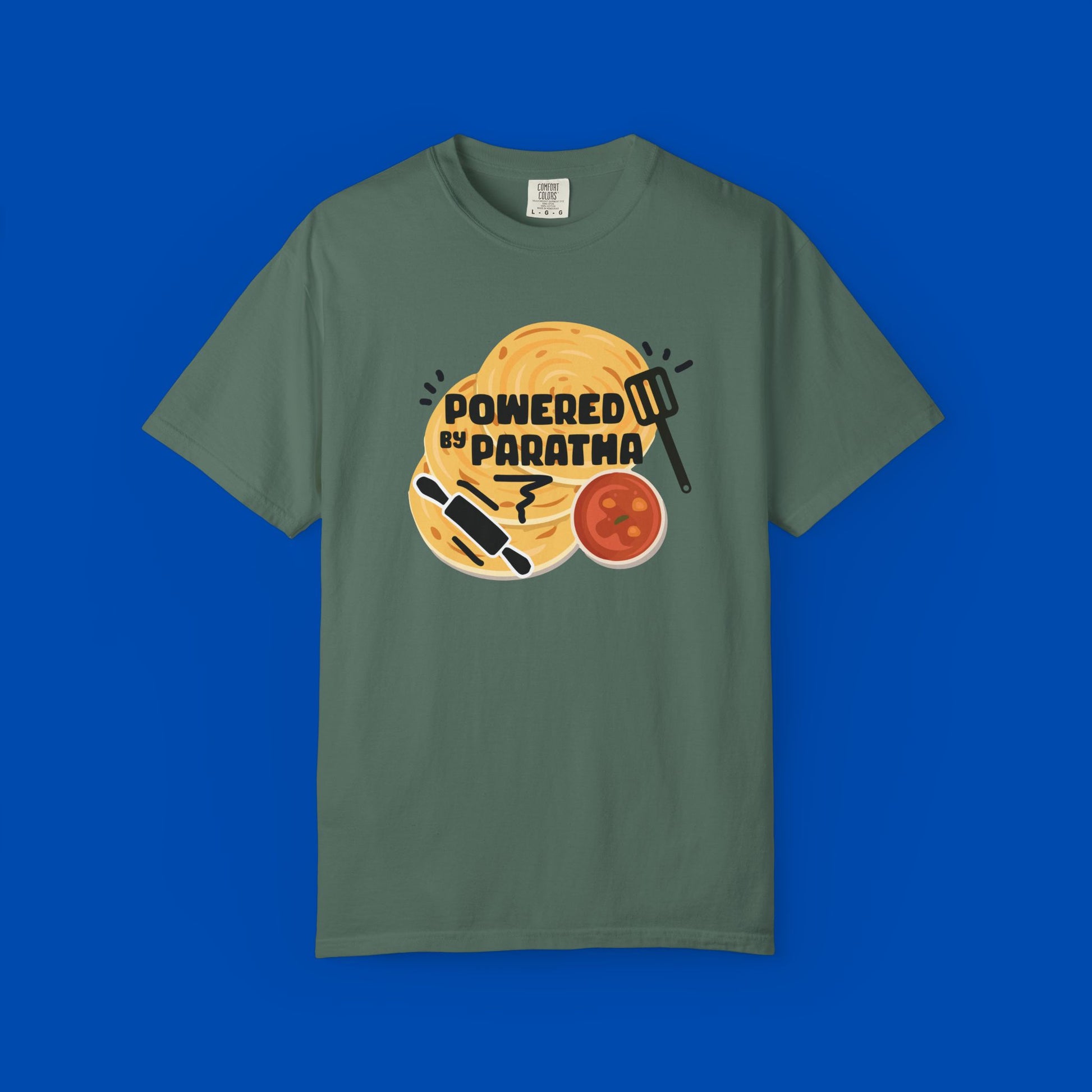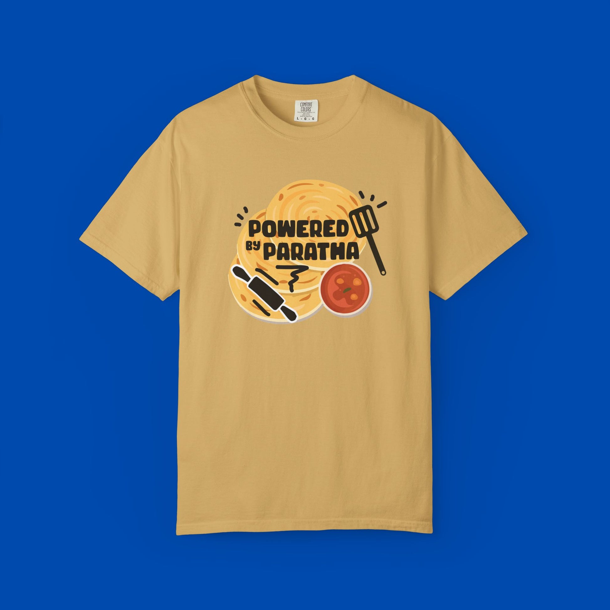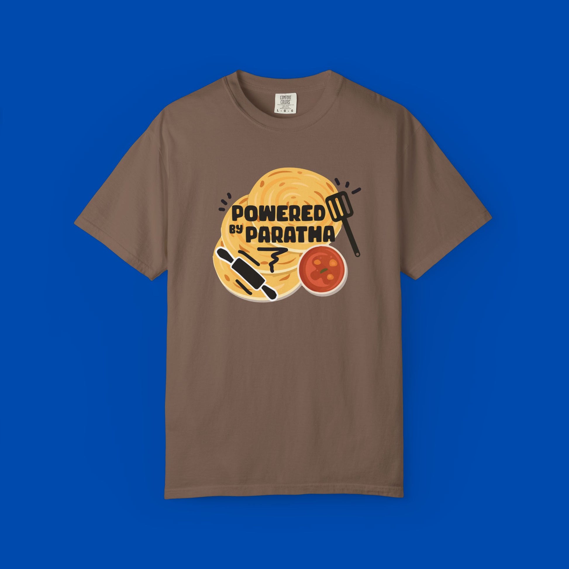 Running on parathas and proud of it! This tee is for those who draw their strength from the heartiest, flakiest bites.