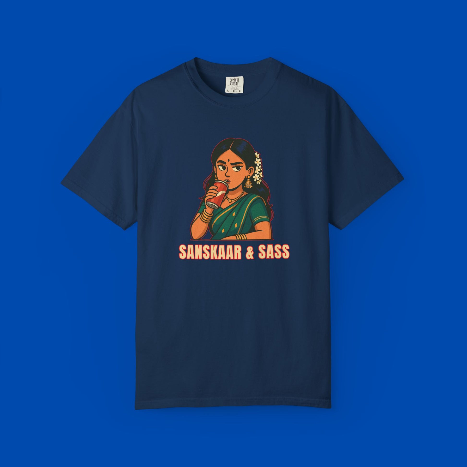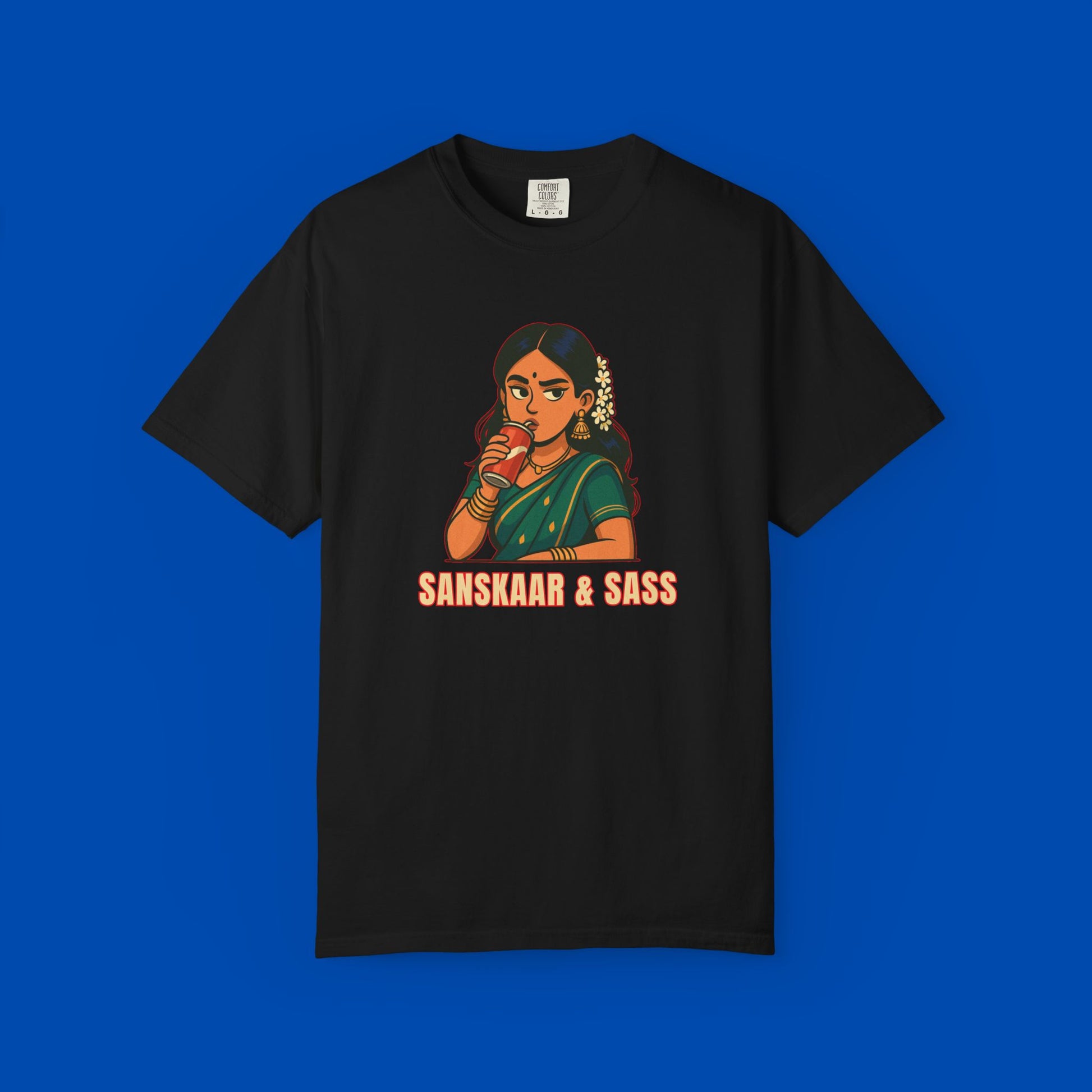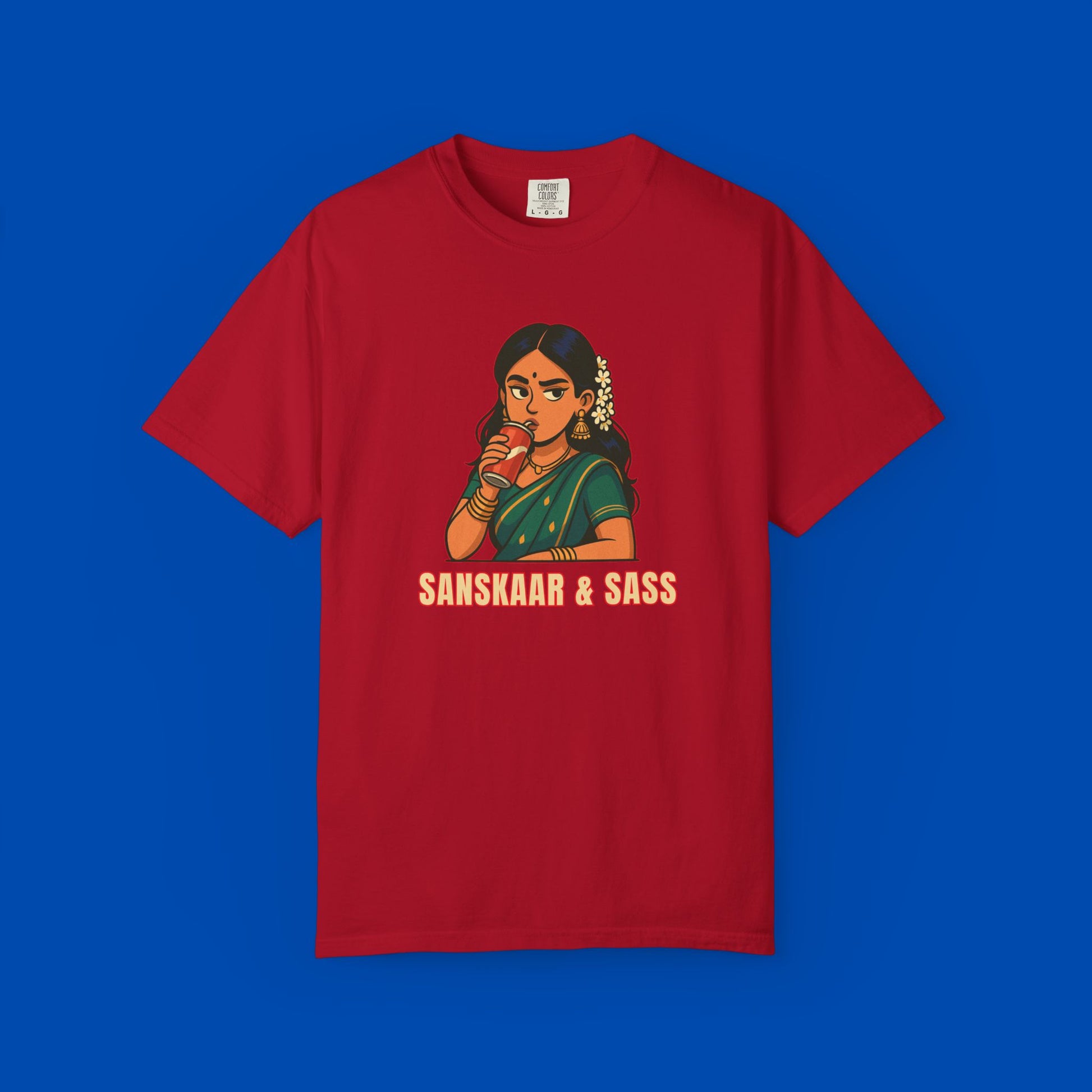 Too cultured to care, too sassy to stay quiet. This tee brings the perfect mix of Desi values and bold vibes—because you’re not choosing between Sanskaar and Sass. You’re rocking both.