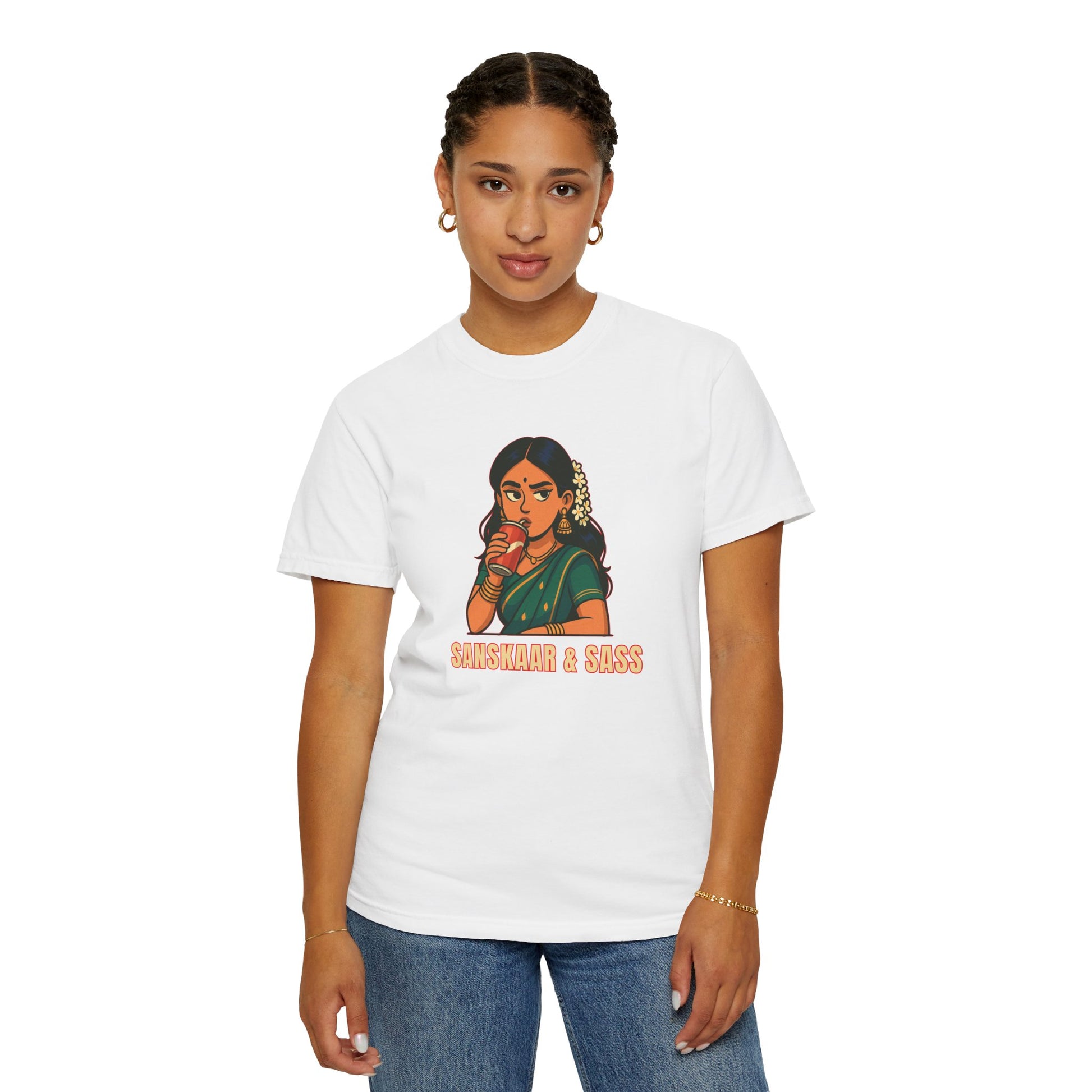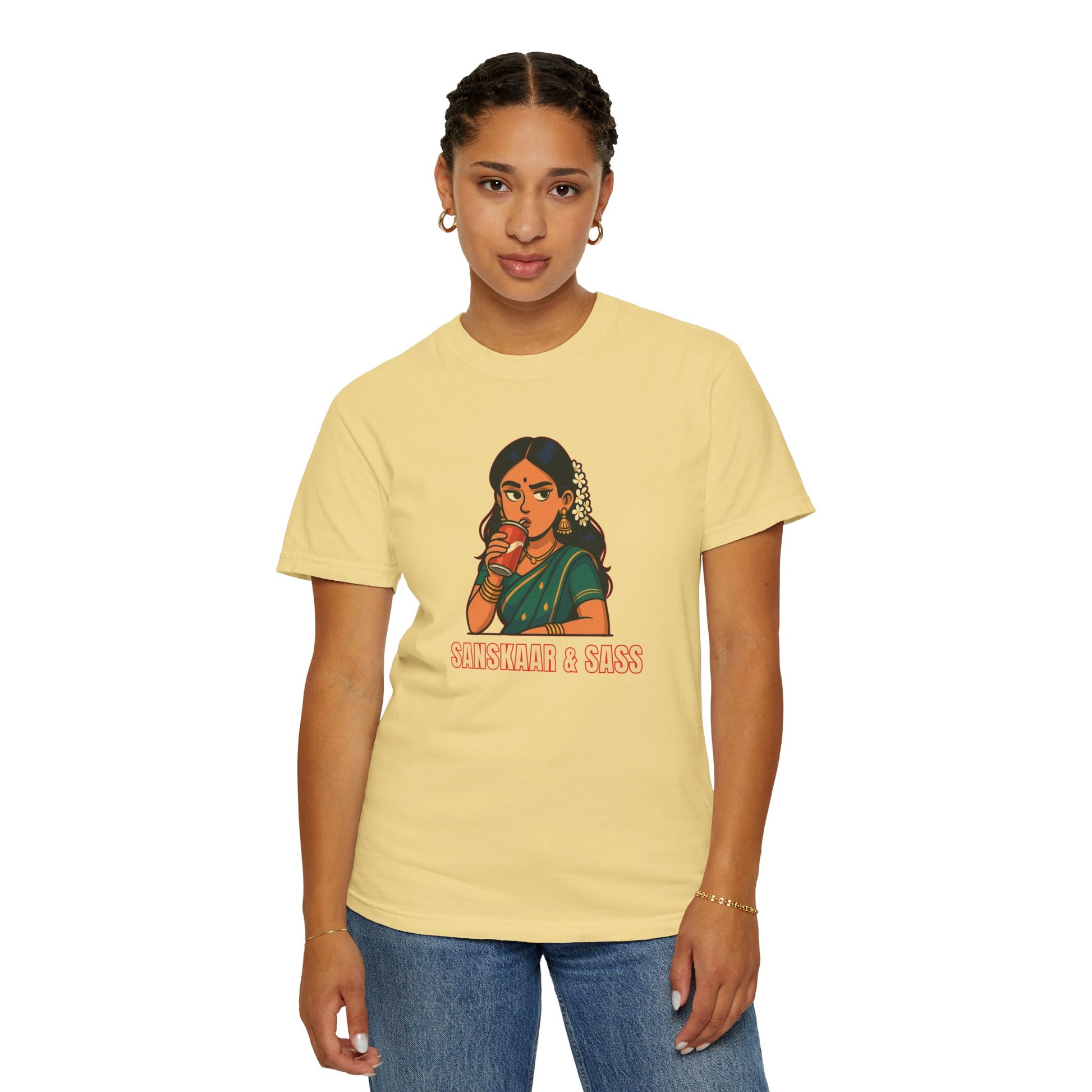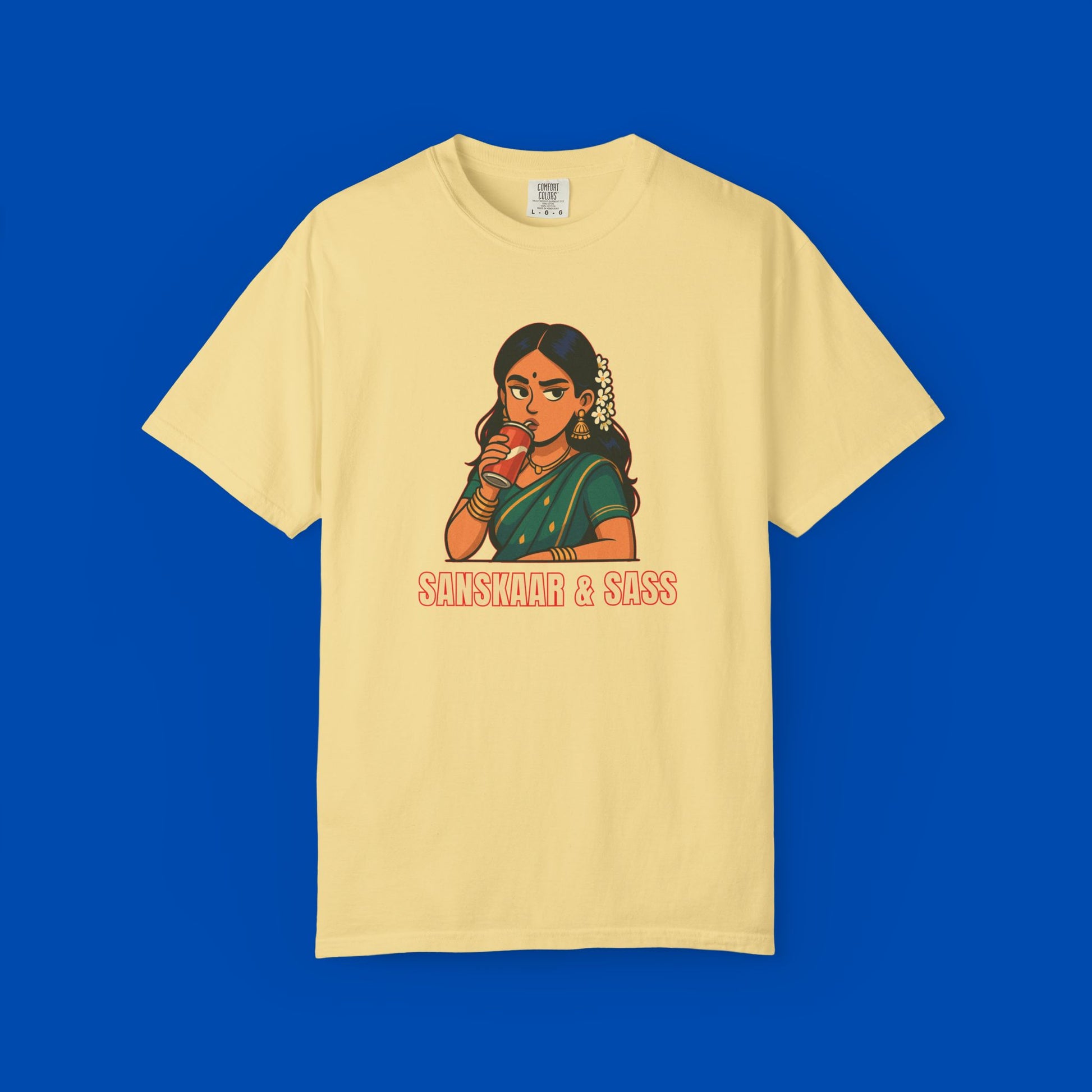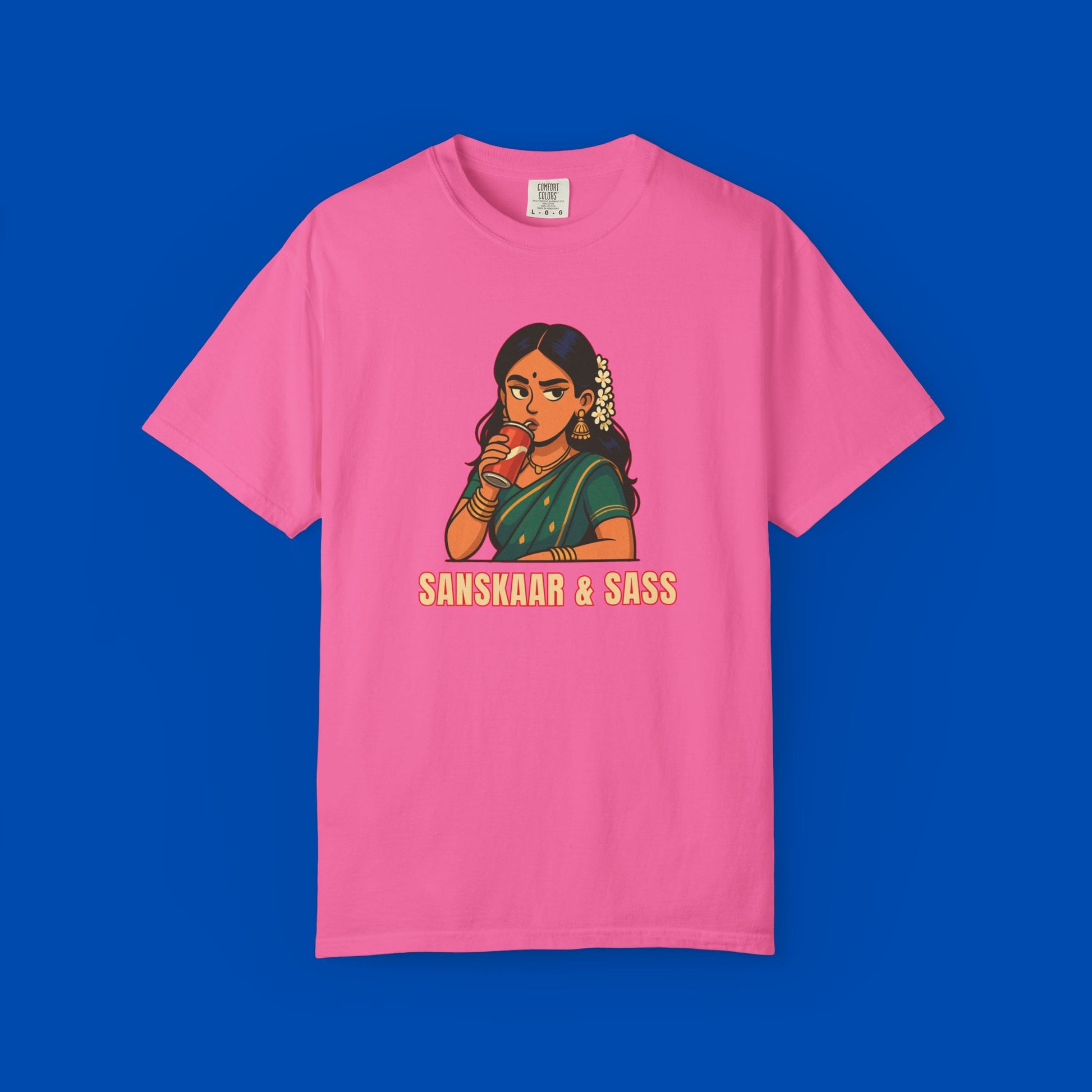 Too cultured to care, too sassy to stay quiet. This tee brings the perfect mix of Desi values and bold vibes—because you’re not choosing between Sanskaar and Sass. You’re rocking both.