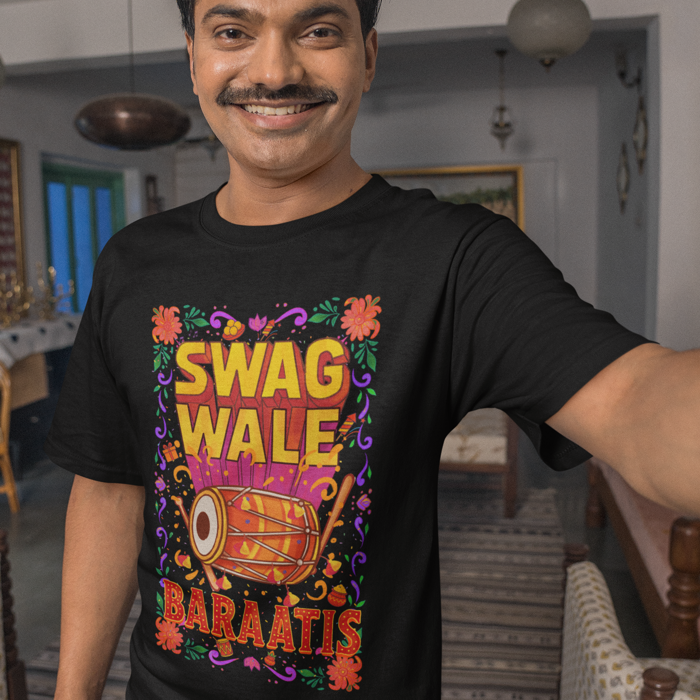 Perfect for the groom’s squad, cousins, and friends who are ready to bring the dance floor alive, this tee screams full-on wedding vibes. From the baraat to the sangeet, it’s the ultimate tee for those who know how to celebrate in style.