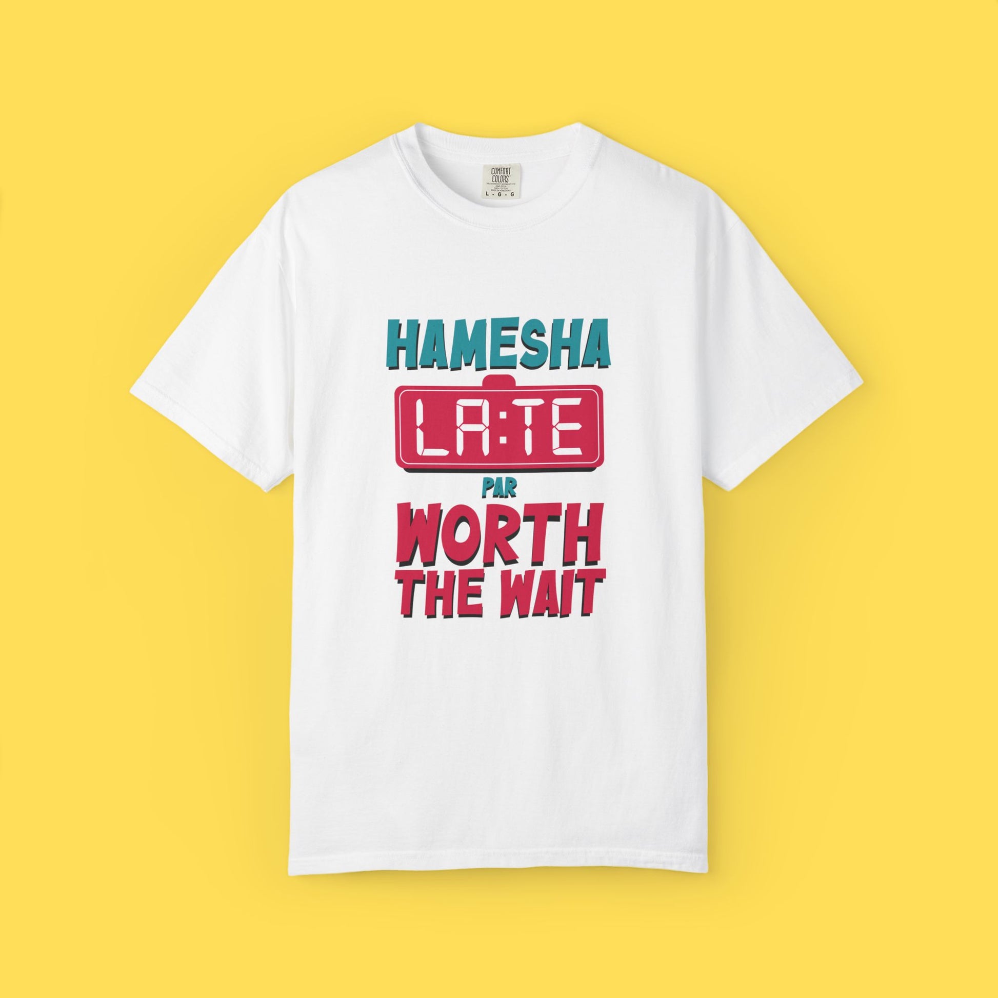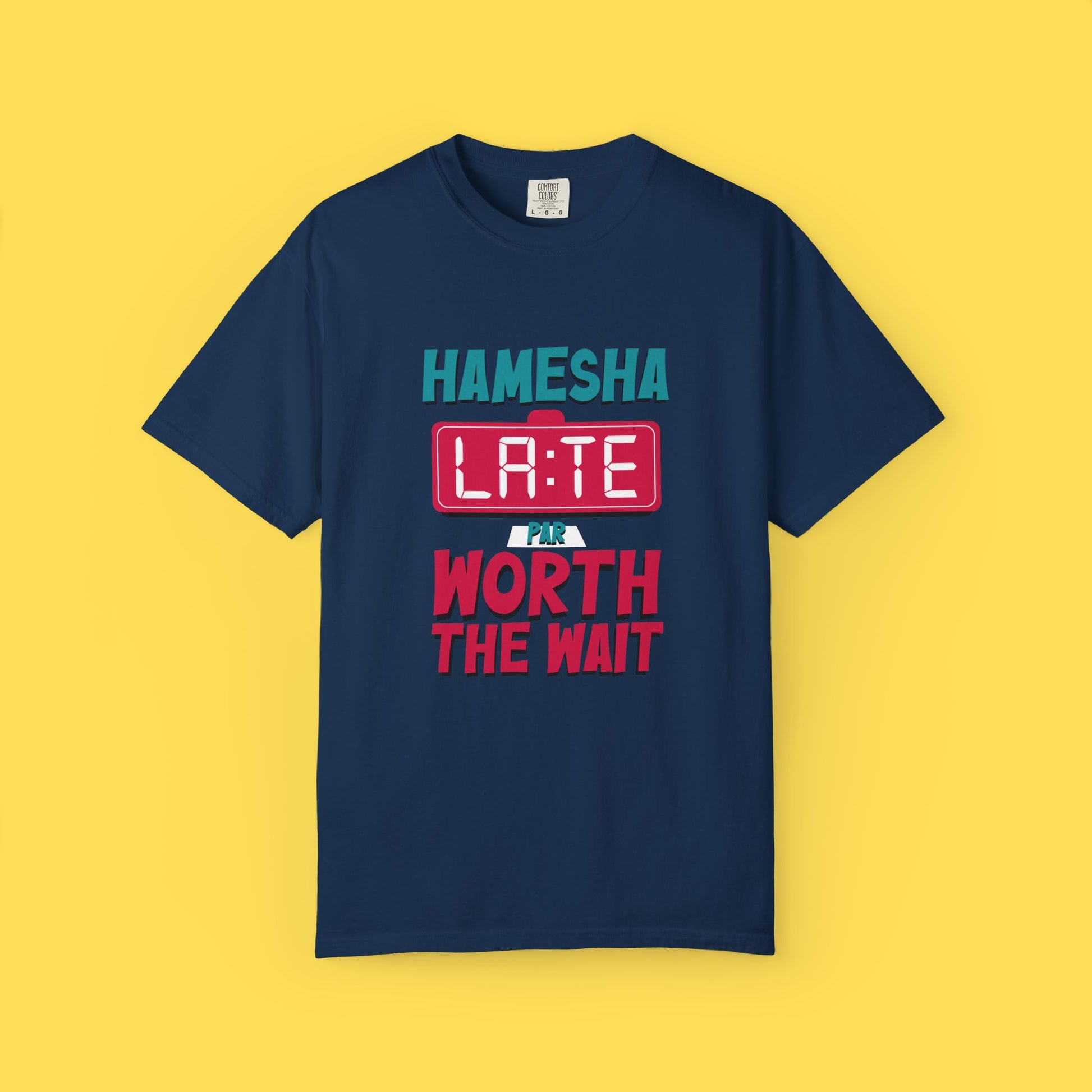 ...because being fashionably late is practically a personality trait! This tee celebrates all the desi timekeepers who may arrive a little late but always make an entrance worth remembering.