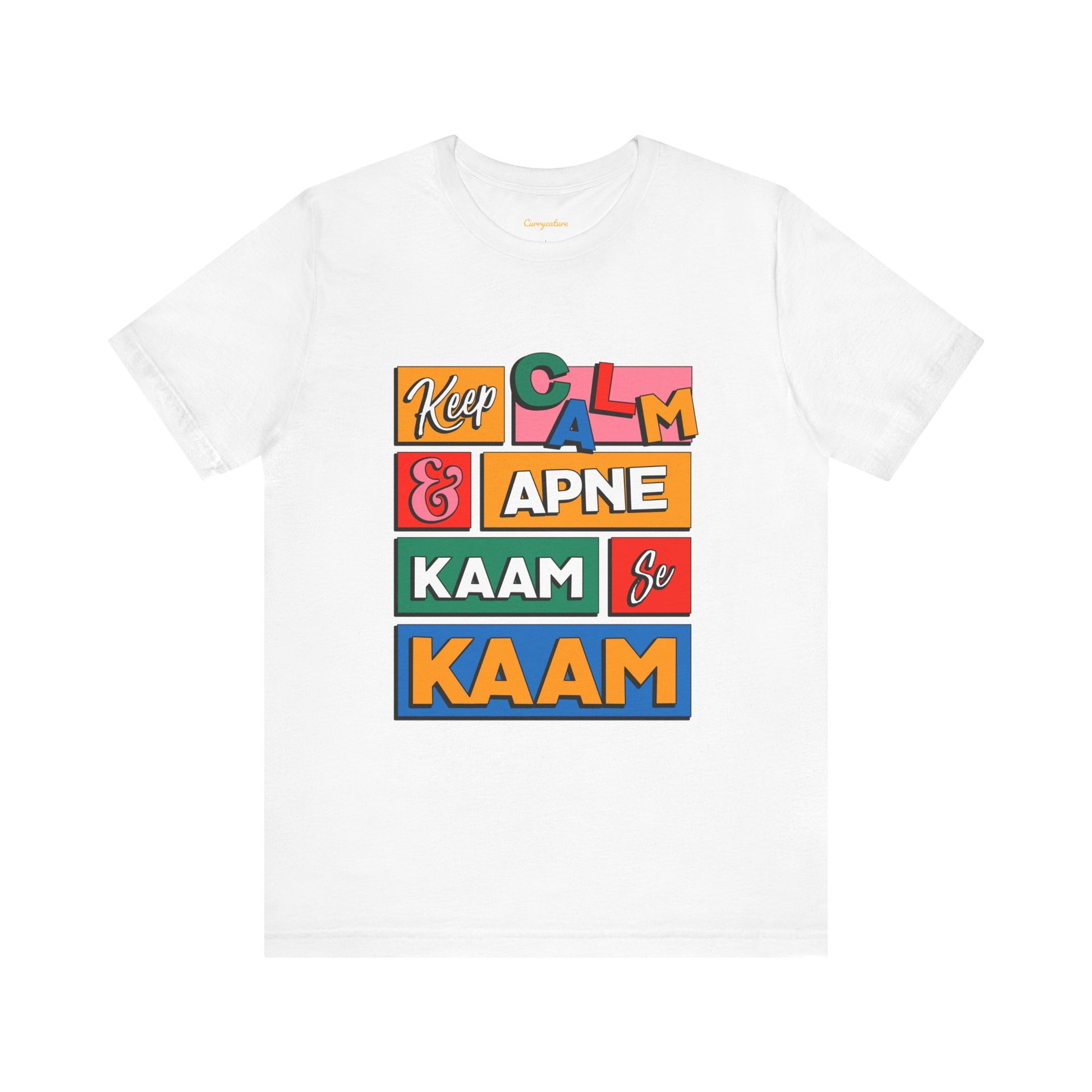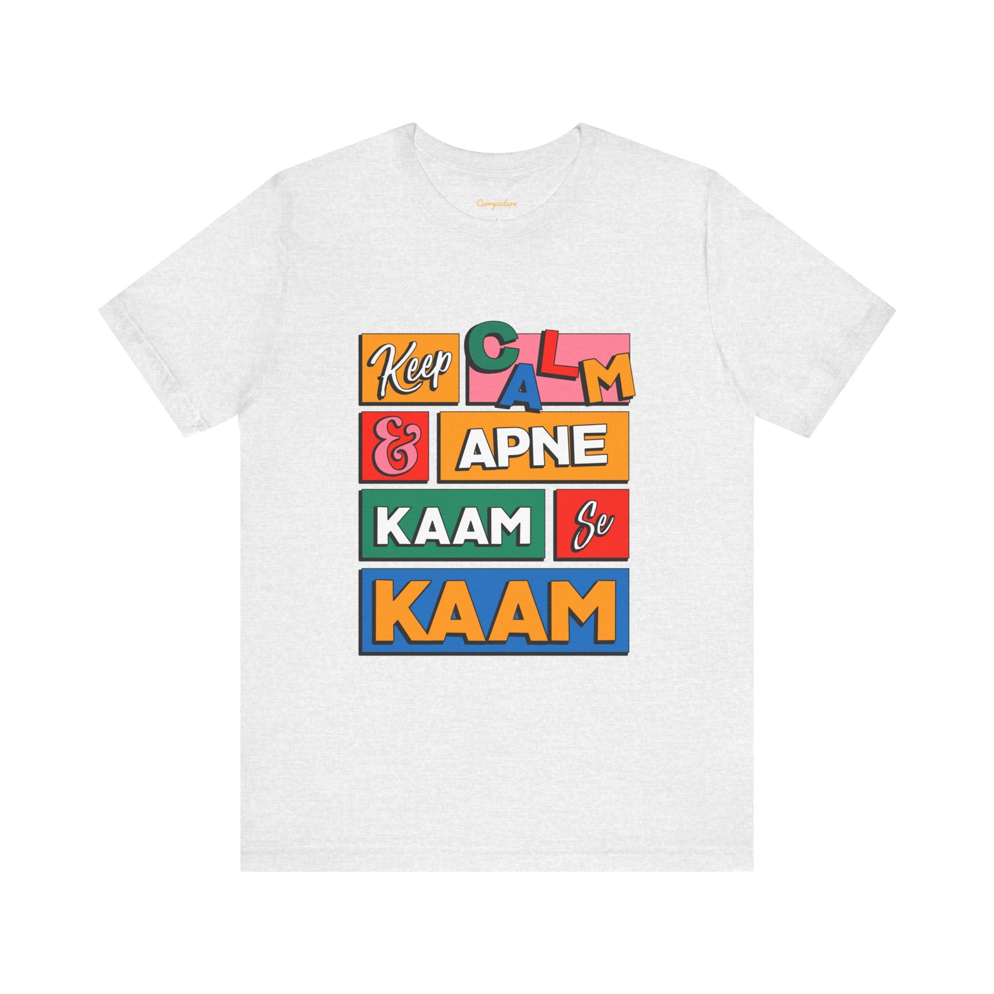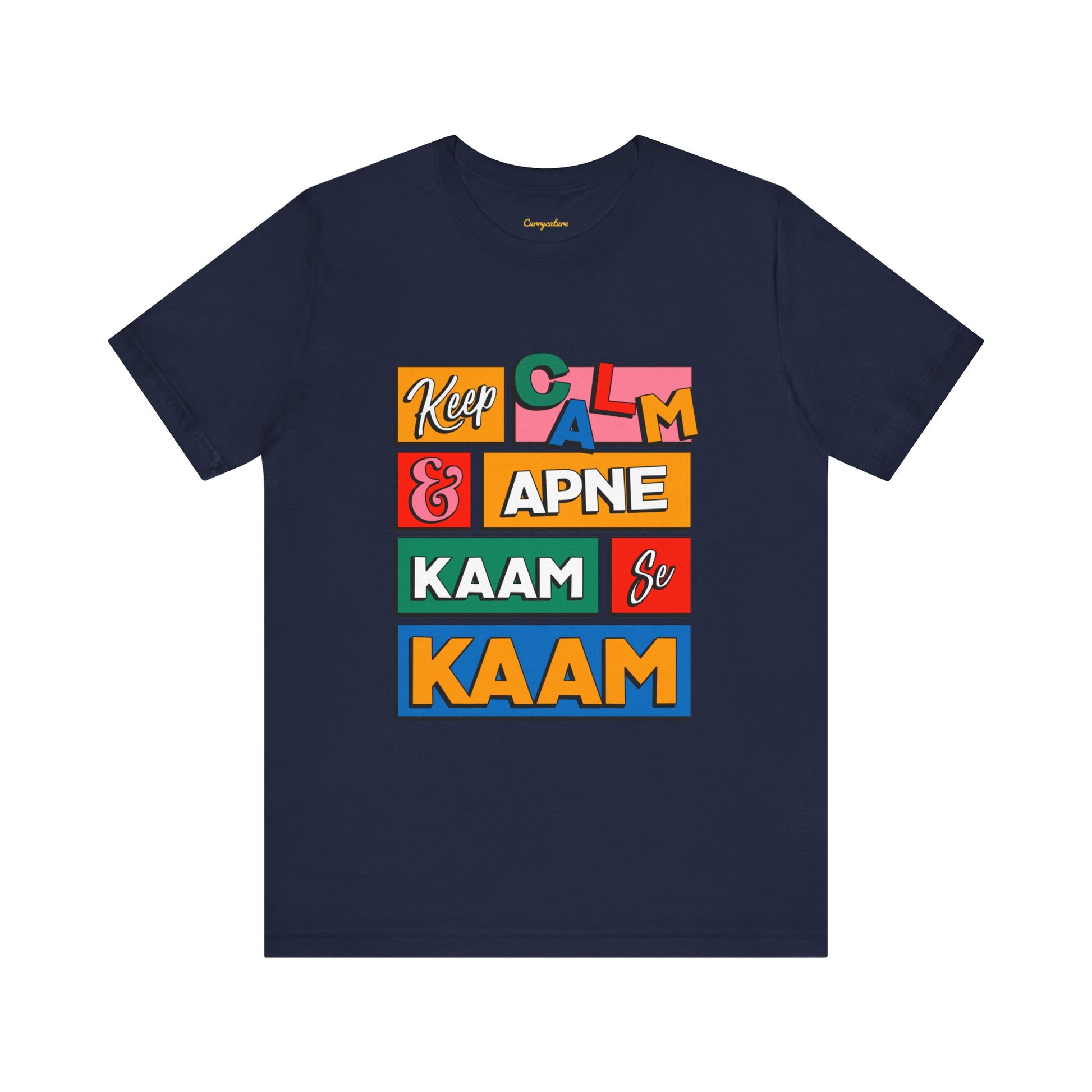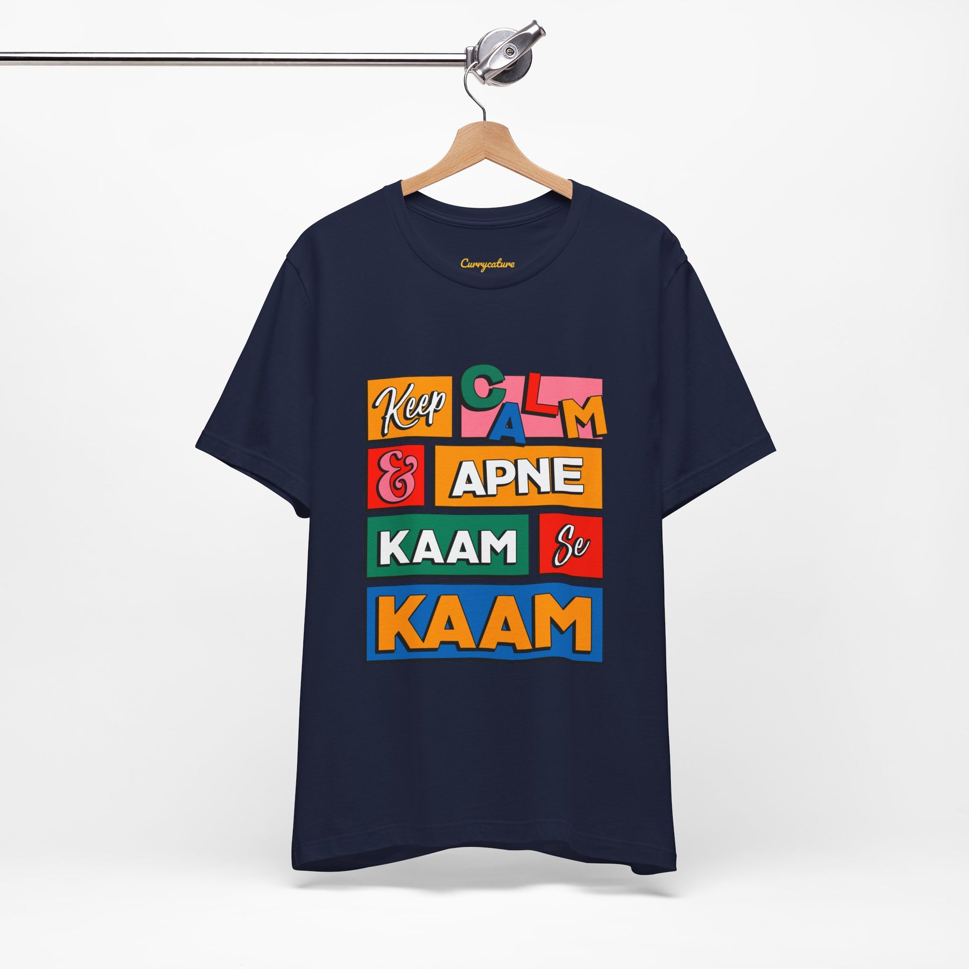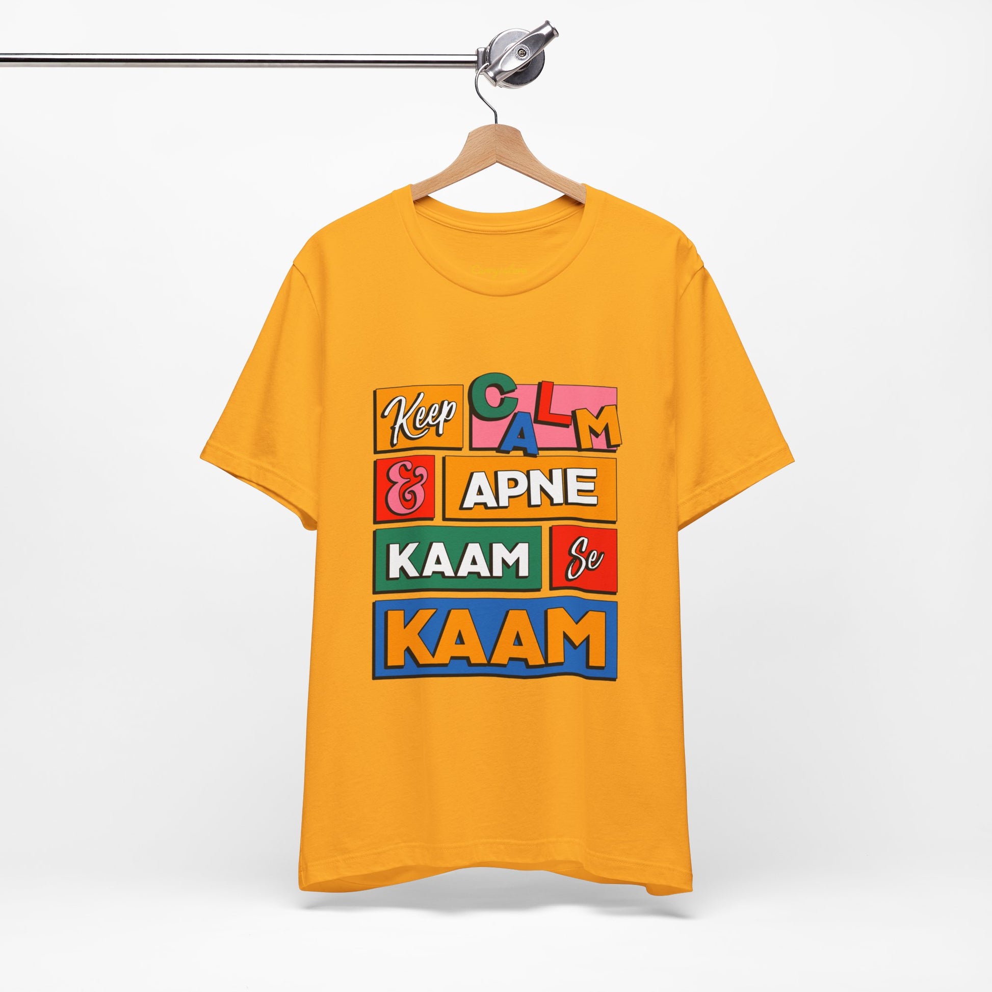 Embrace the 'Keep Calm and Apne Kaam Se Kaam' attitude with this vibrant graphic tee. Express your desi swag while staying cool and collected. Perfect for those who believe in letting success do the talking.