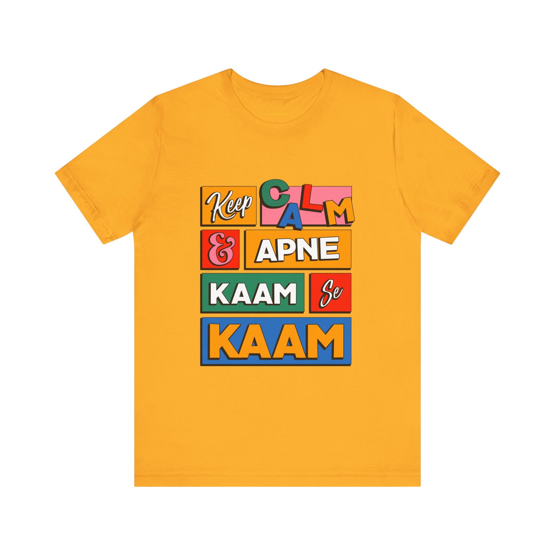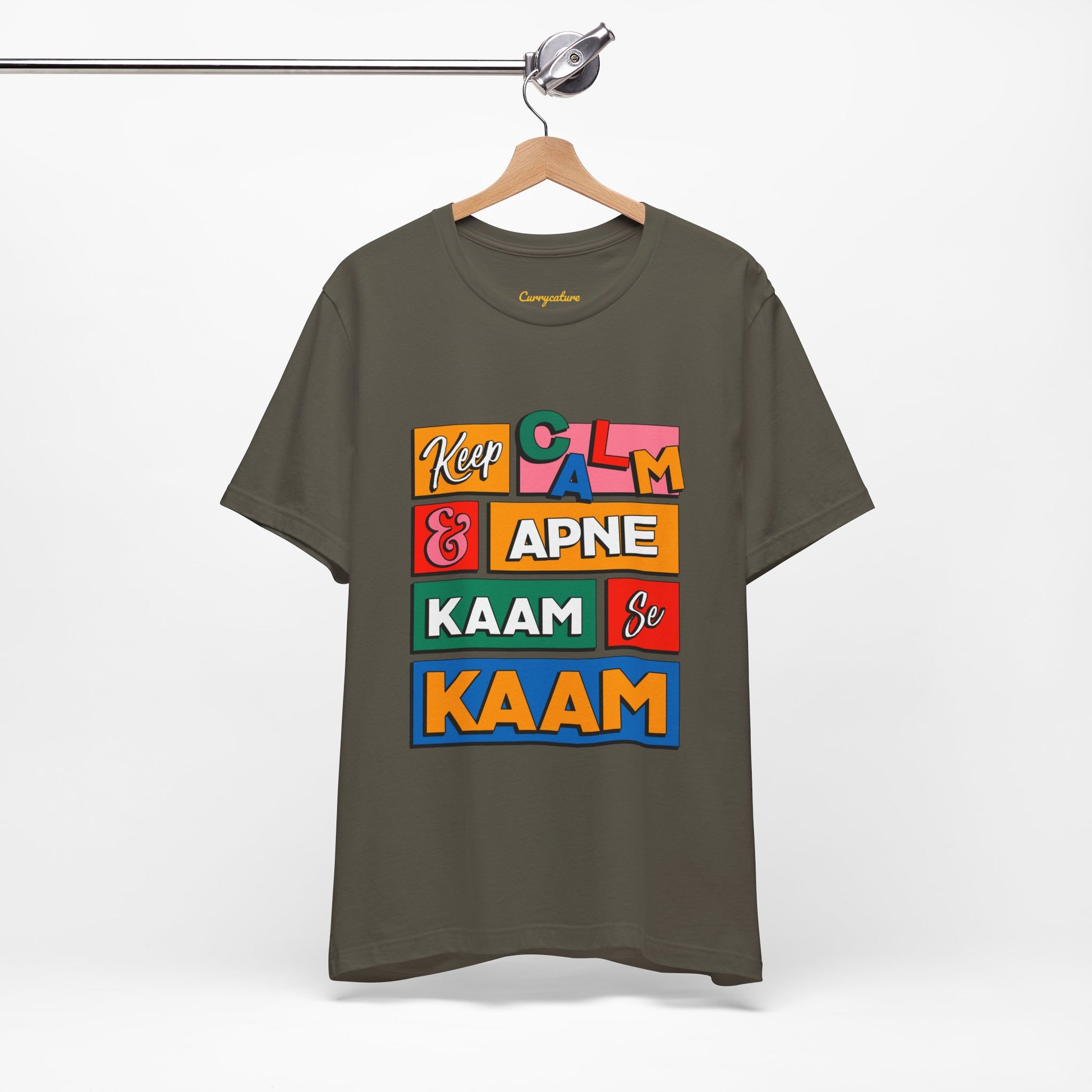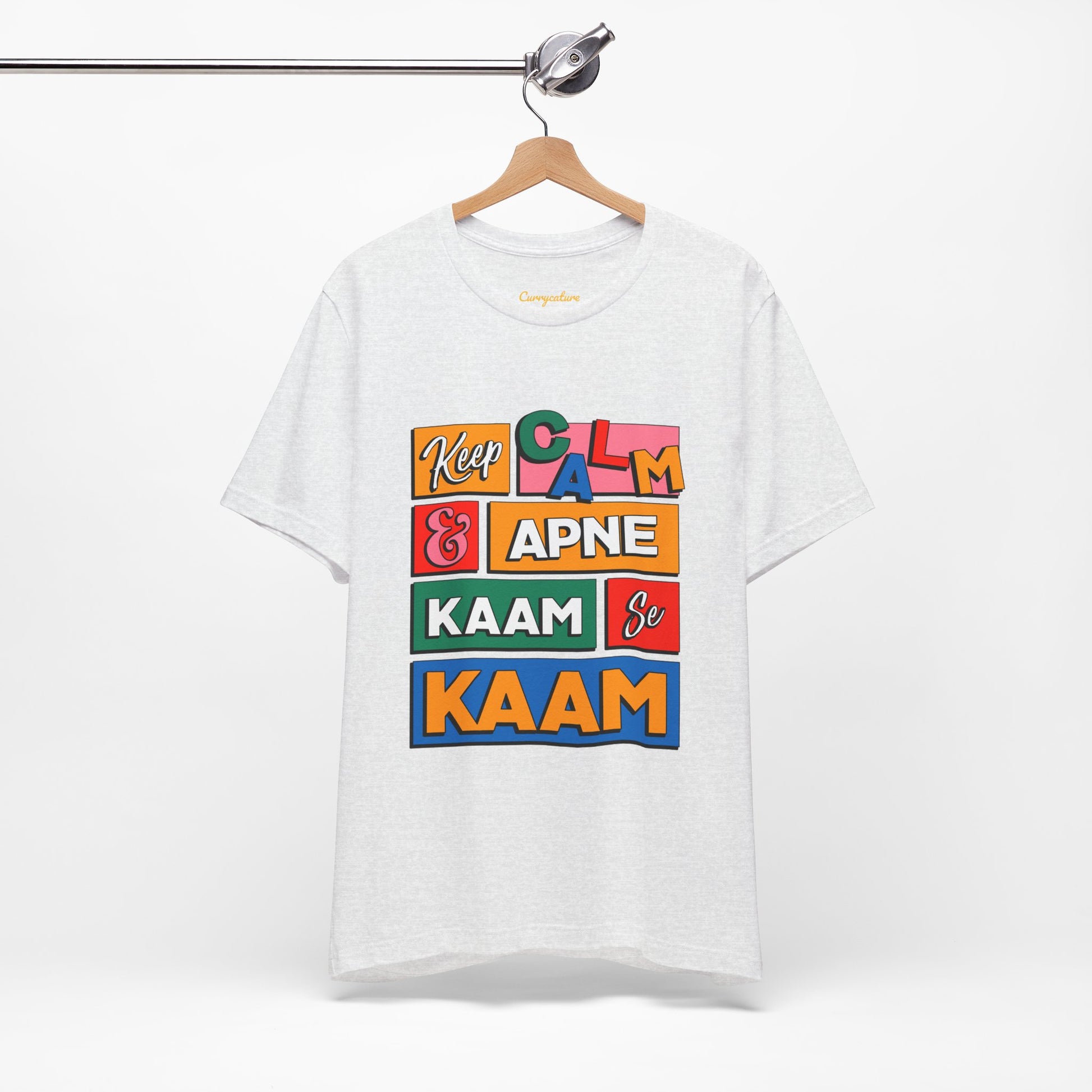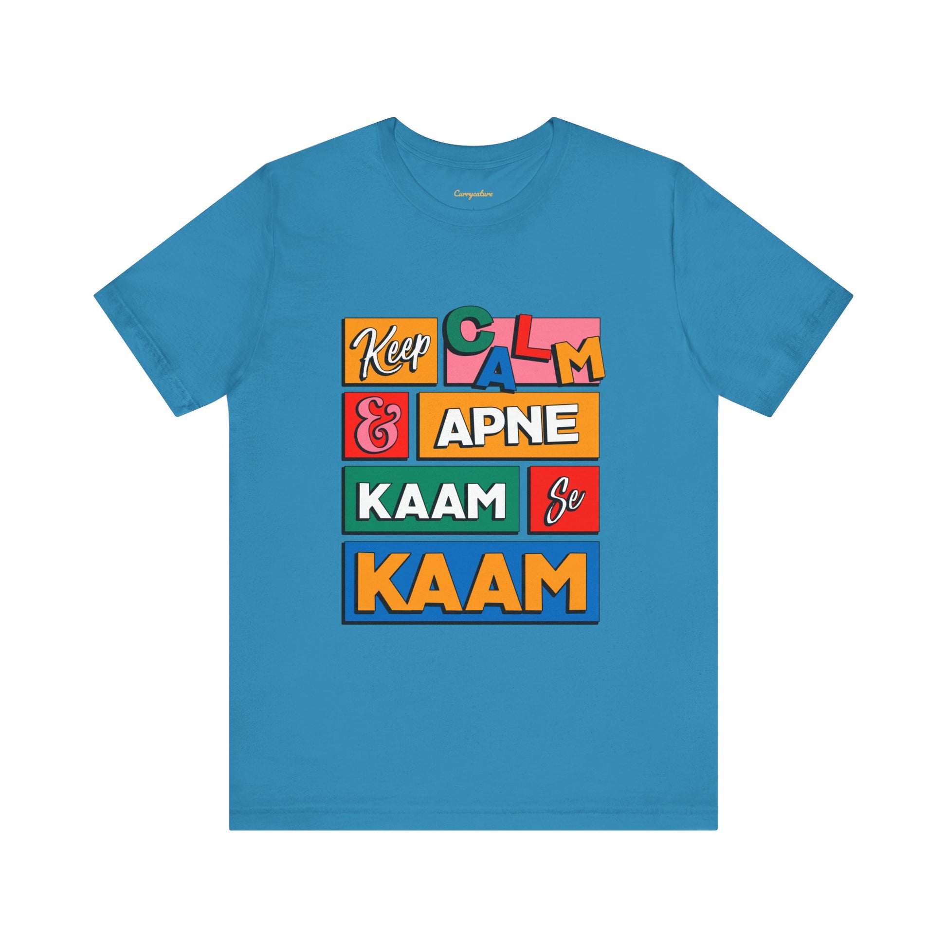 Embrace the 'Keep Calm and Apne Kaam Se Kaam' attitude with this vibrant graphic tee. Express your desi swag while staying cool and collected. Perfect for those who believe in letting success do the talking.