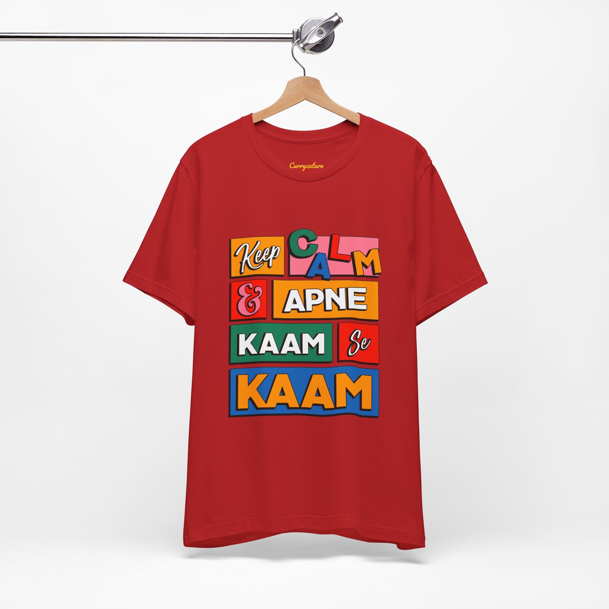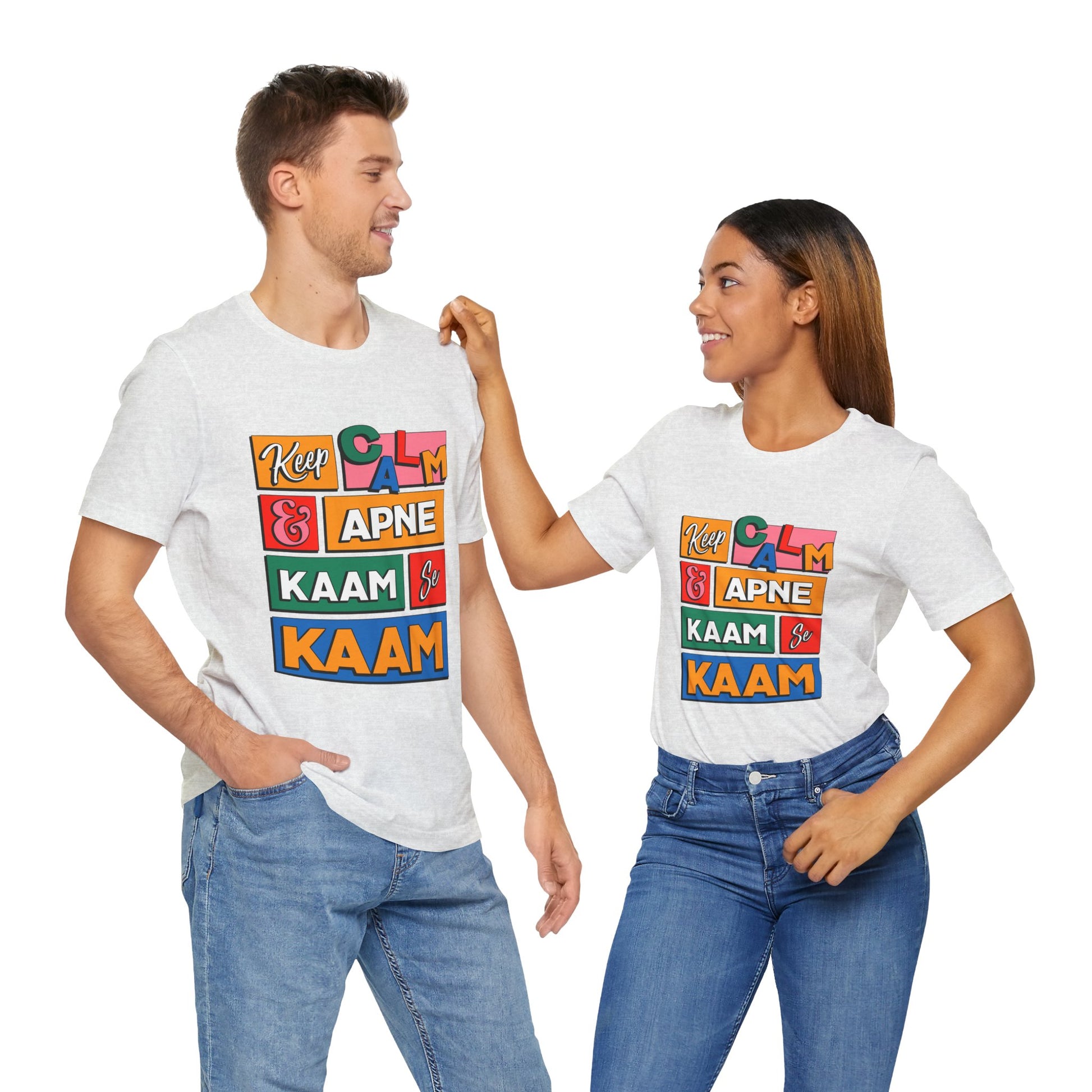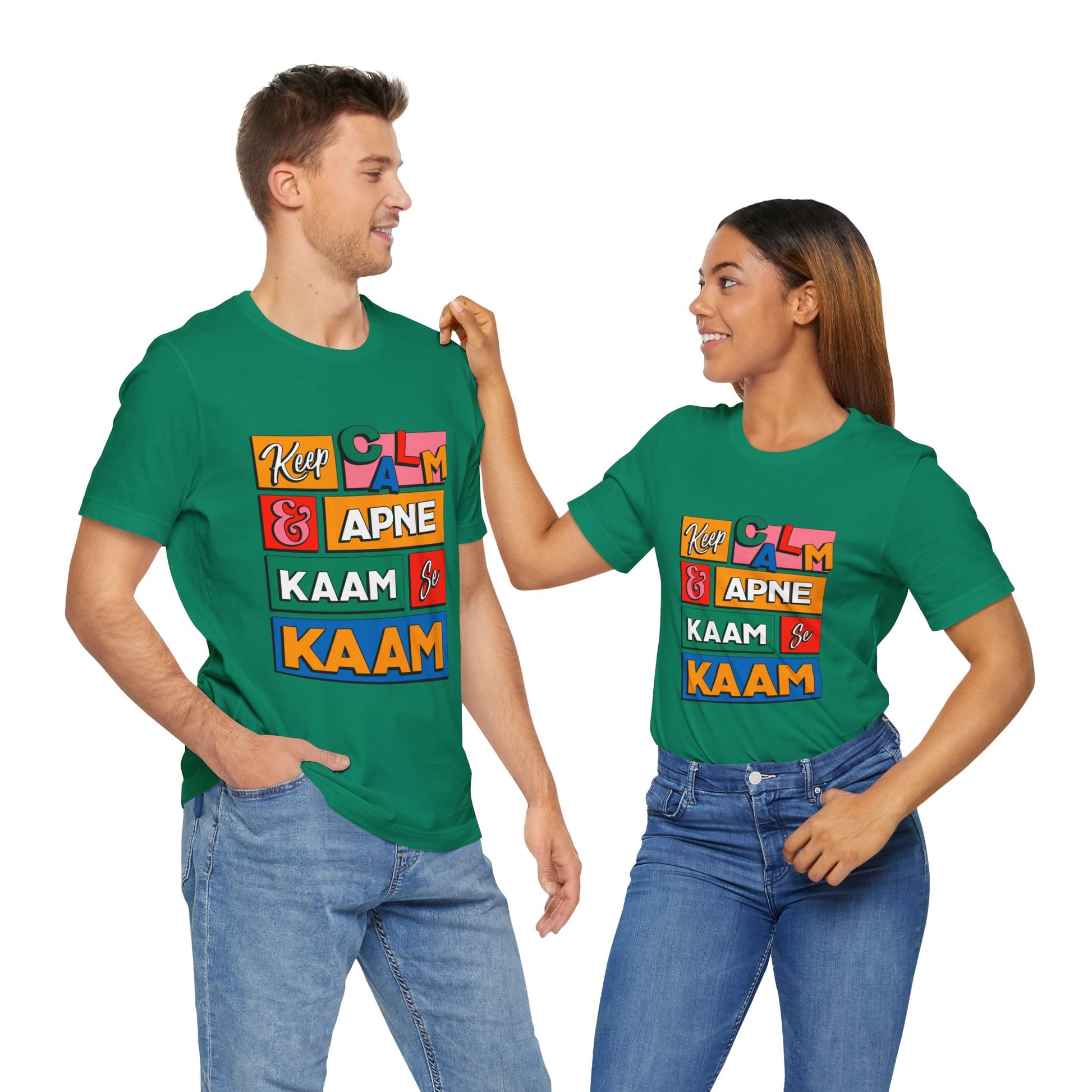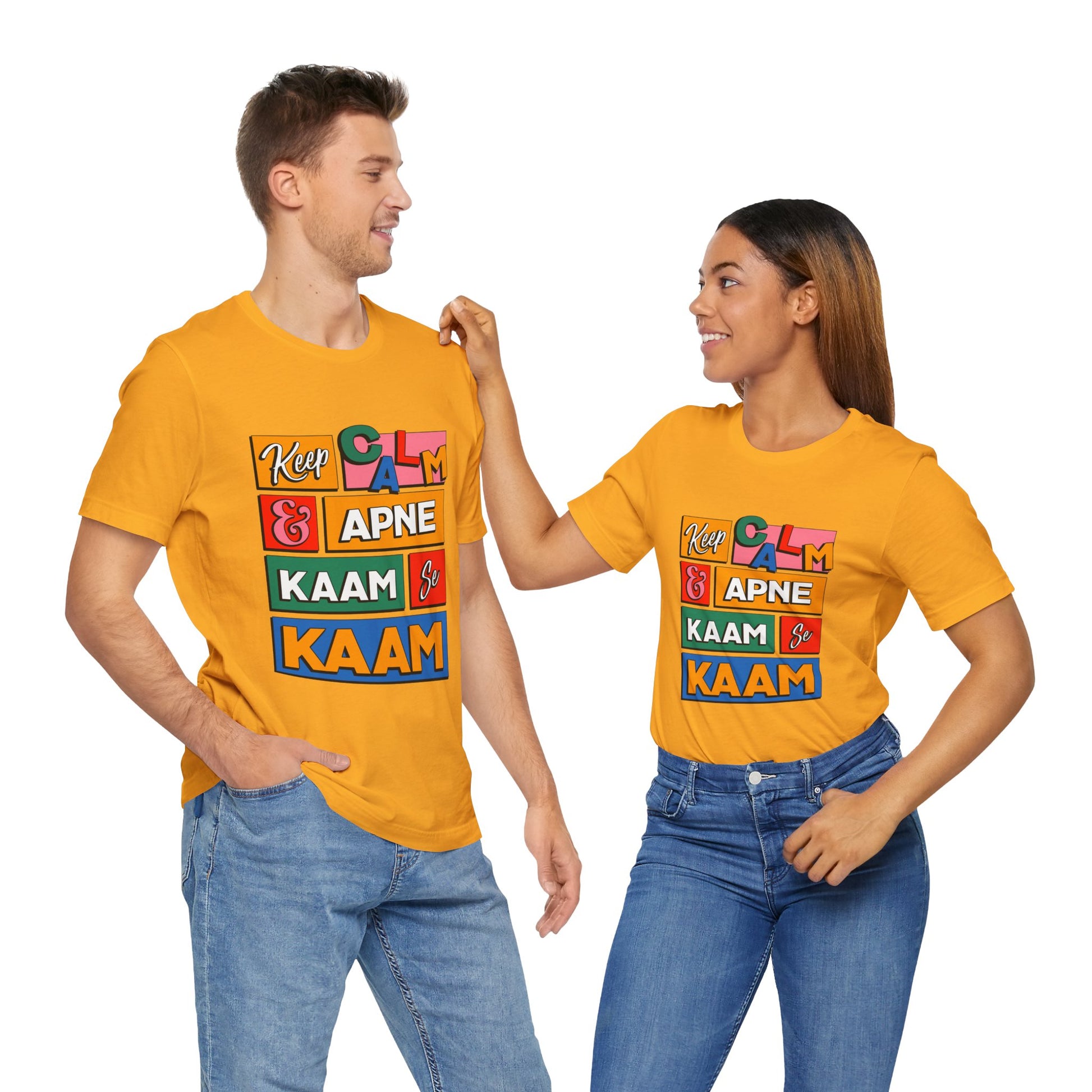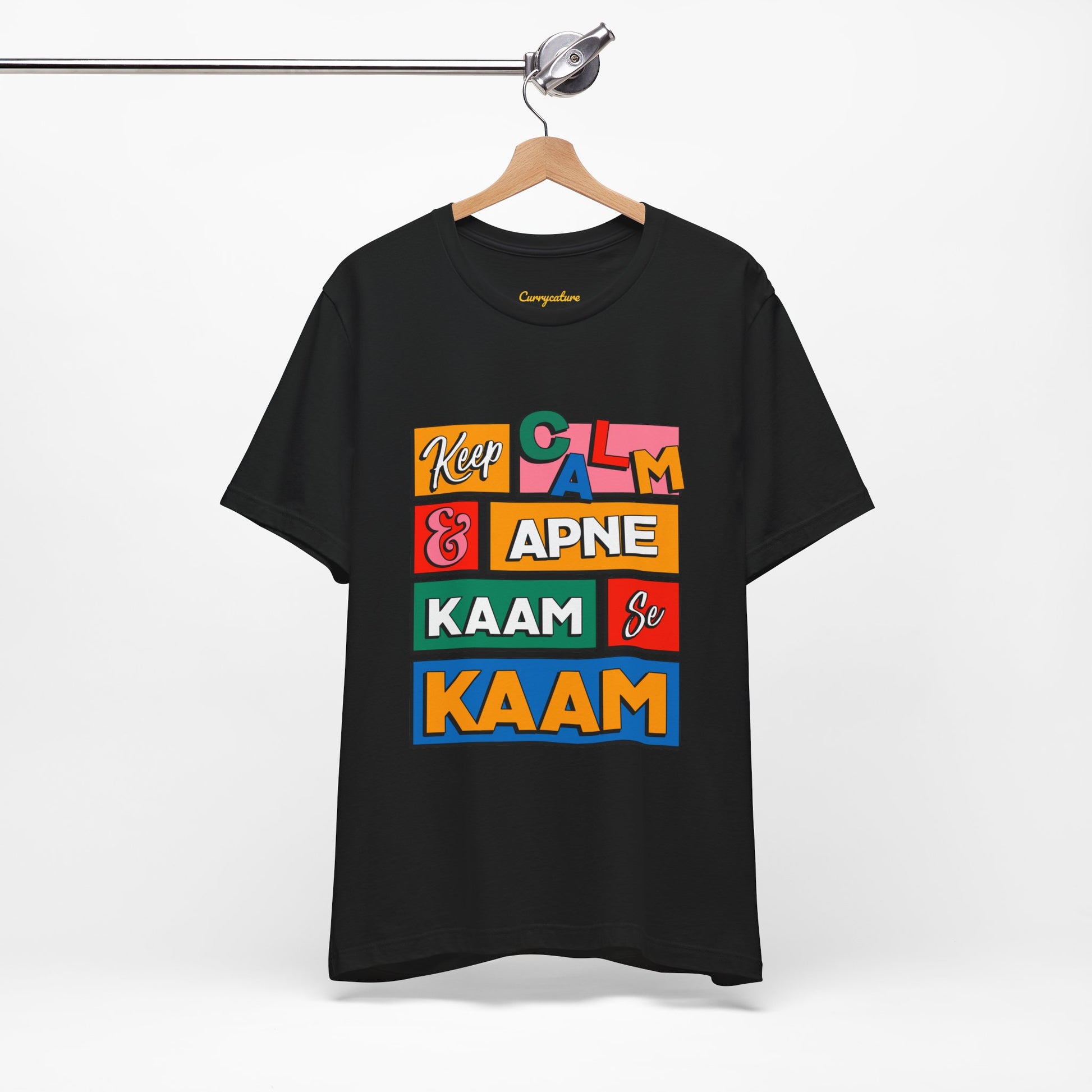 Embrace the 'Keep Calm and Apne Kaam Se Kaam' attitude with this vibrant graphic tee. Express your desi swag while staying cool and collected. Perfect for those who believe in letting success do the talking.