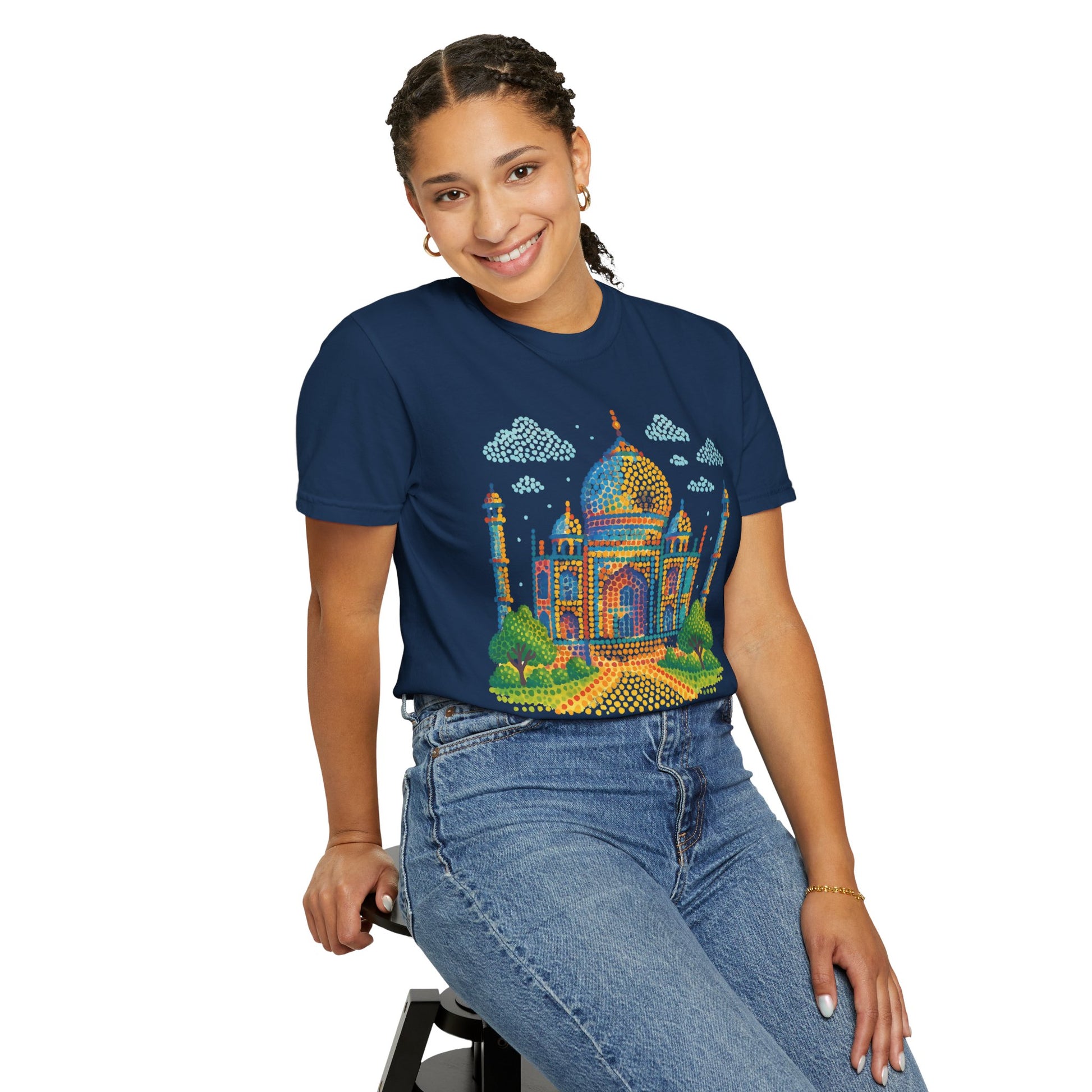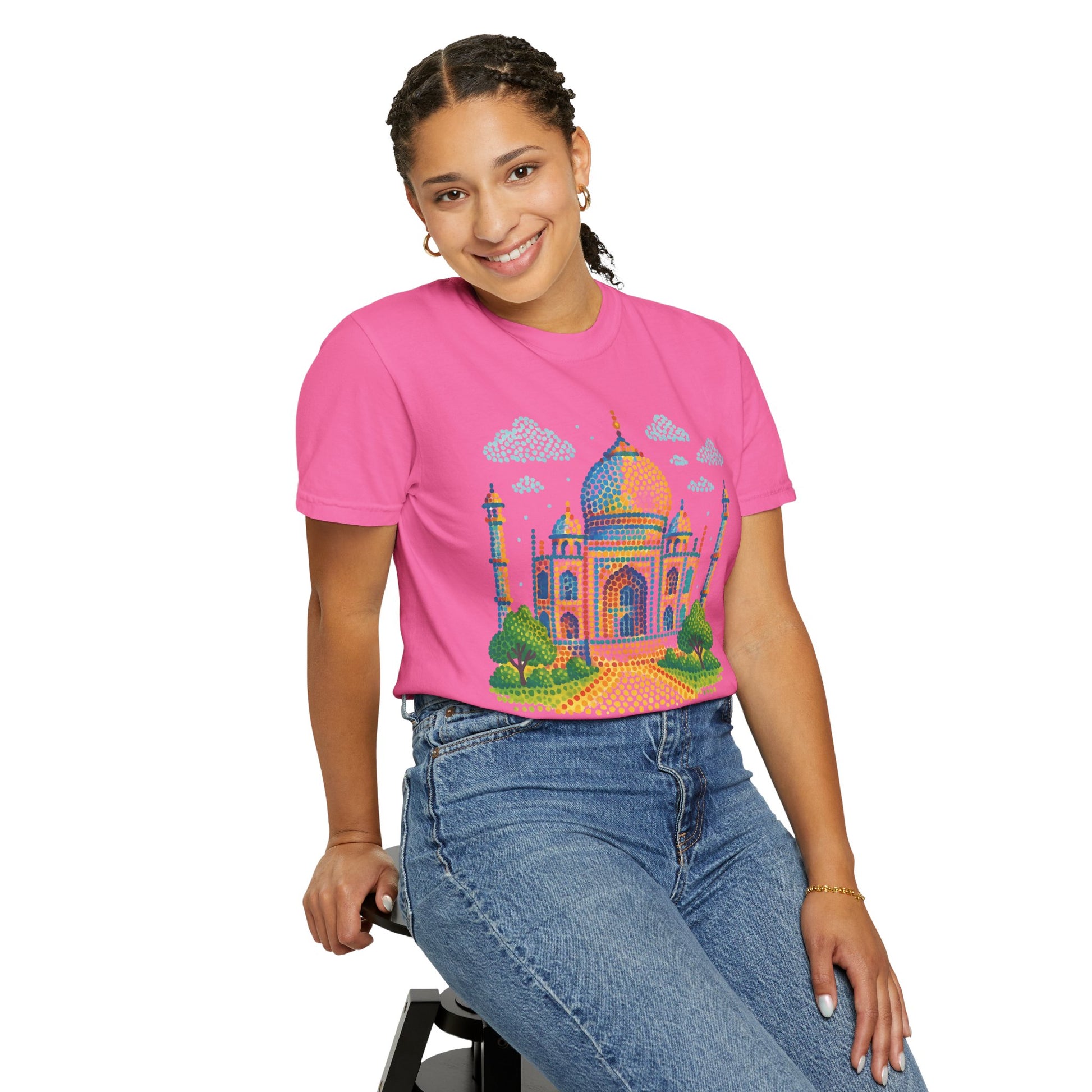 A symbol of timeless love, now on your tee. This design brings the magic of the Taj Mahal to your everyday look—iconic, detailed, and effortlessly desi. 🤍 Keep the romance alive—wear the monument of love.
